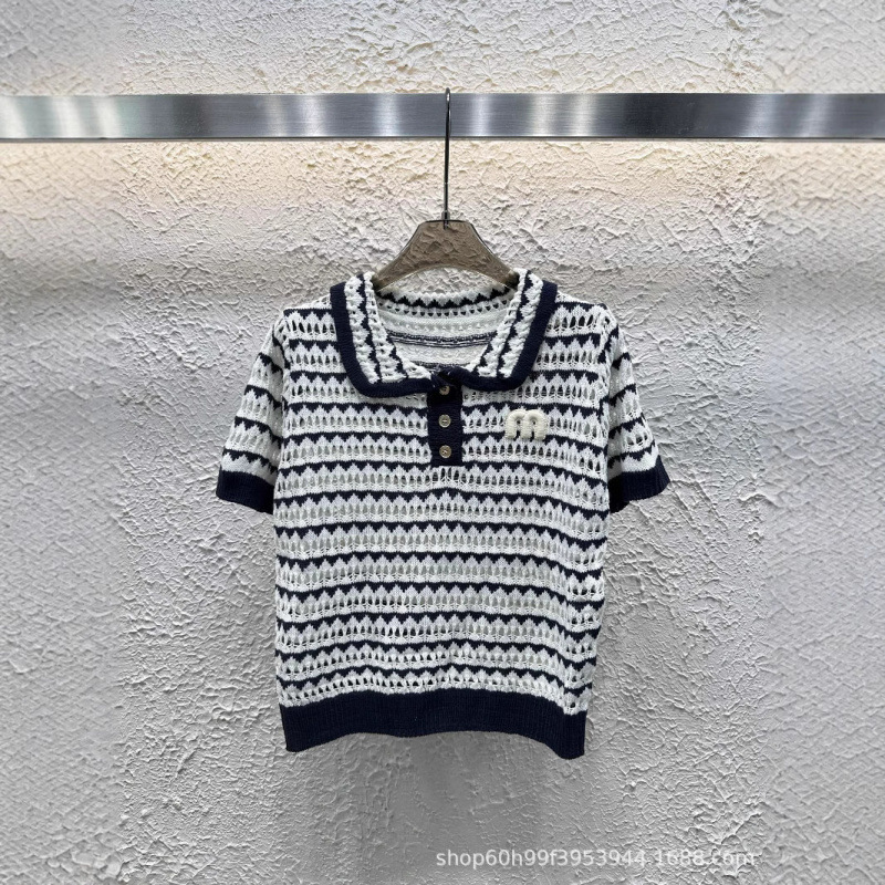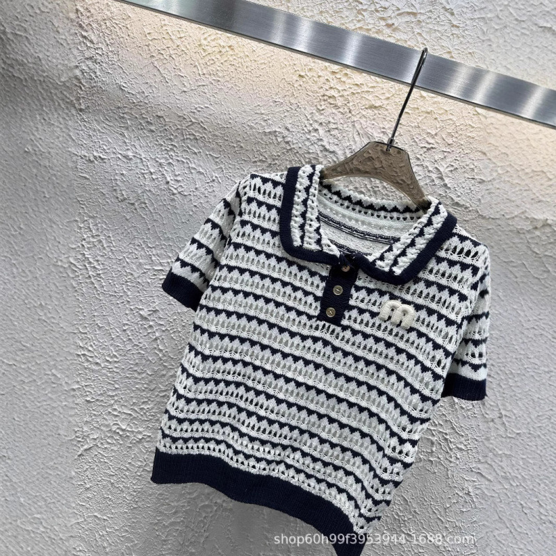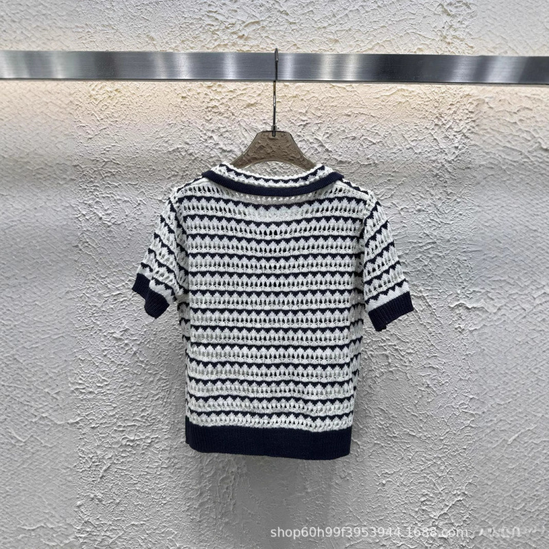 25 новых летних стилей для женщин, маленький ароматный стиль, полосатые полые вязаные крючком лацканы с короткими рукавами