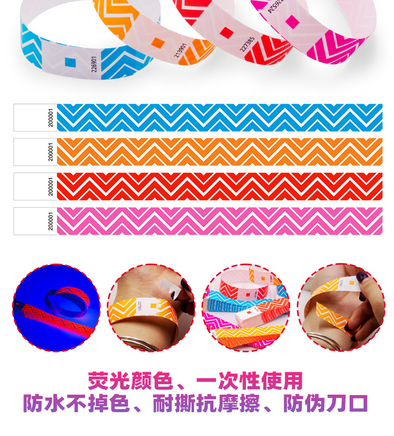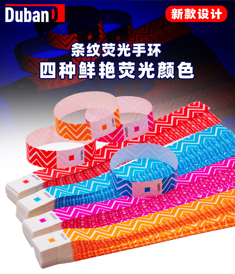 Флуоресцентный цвет, одноразовый водонепроницаемый полосатый браслет, браслет, билет в парк развлечений, билет на вход в ночной клуб, новый дизайн, готовый запас