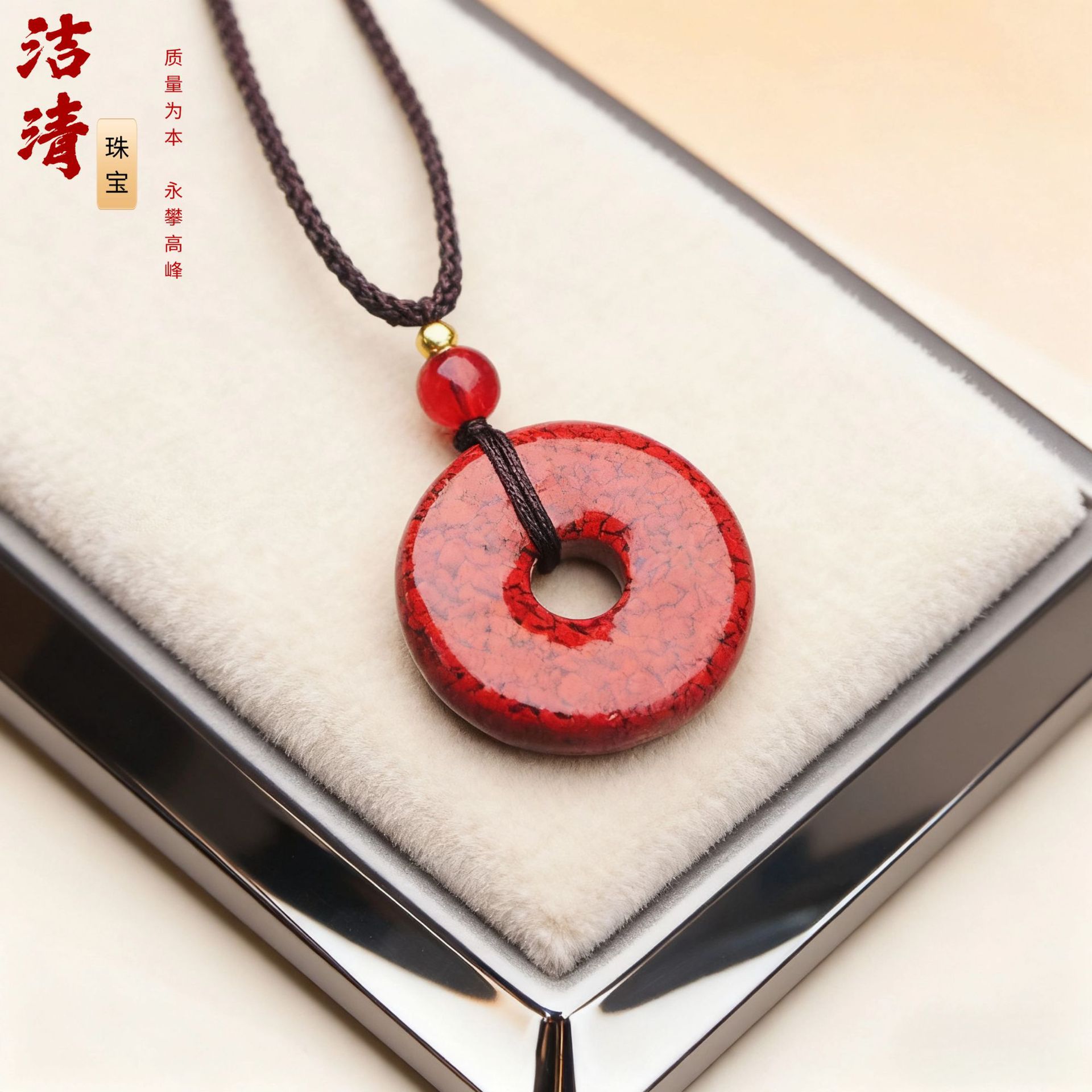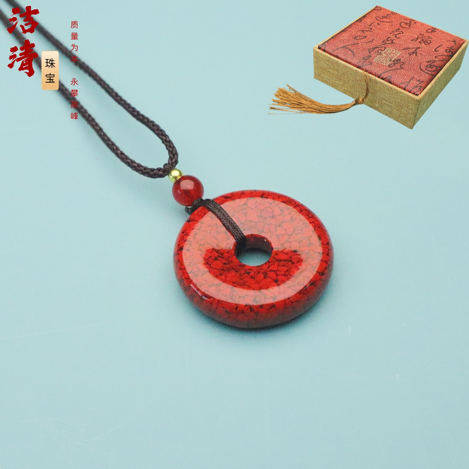 Безопасная пряжка кулон ожерелье женский летний простой длинный натуральный камень шейный шейный цепной оптом натуральный киноварный кулон