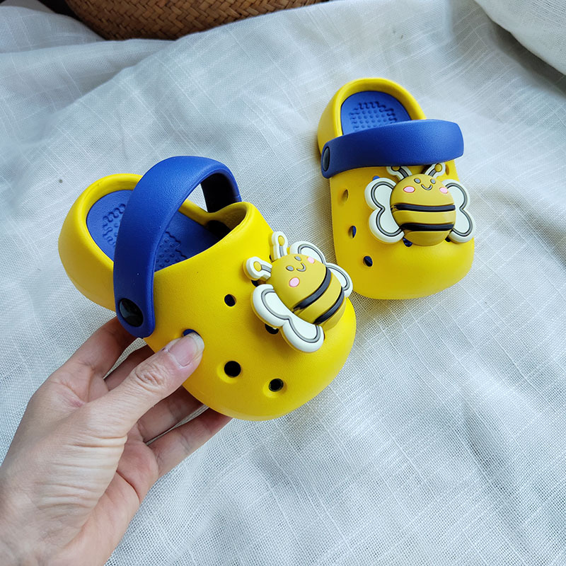 Две носить детские пещерные туфли мультфильм маленькая пчела принцесса маленькая девочка Баотоу домашние тапочки детское обучение сандалии мужской