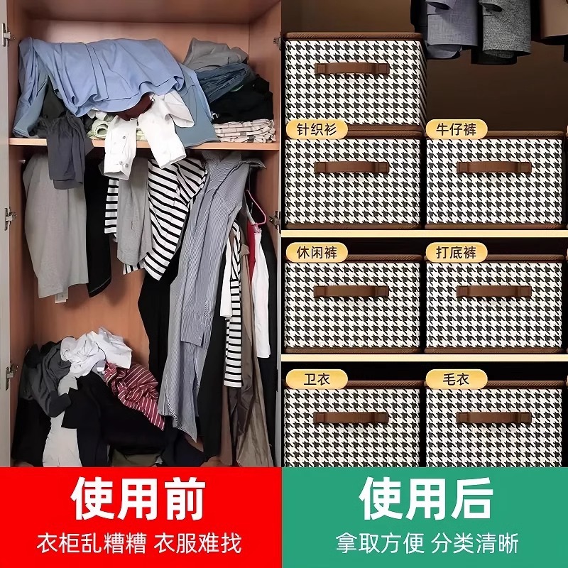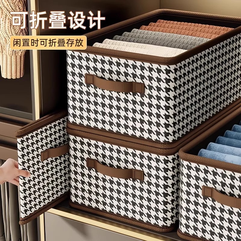 Коробка для хранения из ткани с узором «гусиные лапки», износостойкий бытовой шкаф-витрина, полка для одежды, организация пылезащитной складной полки для одежды, коробка для одежды