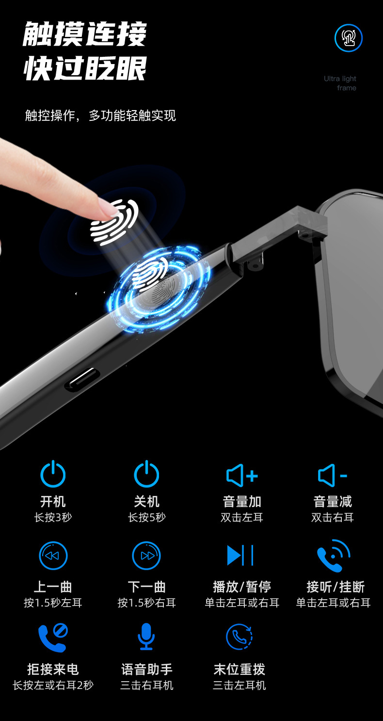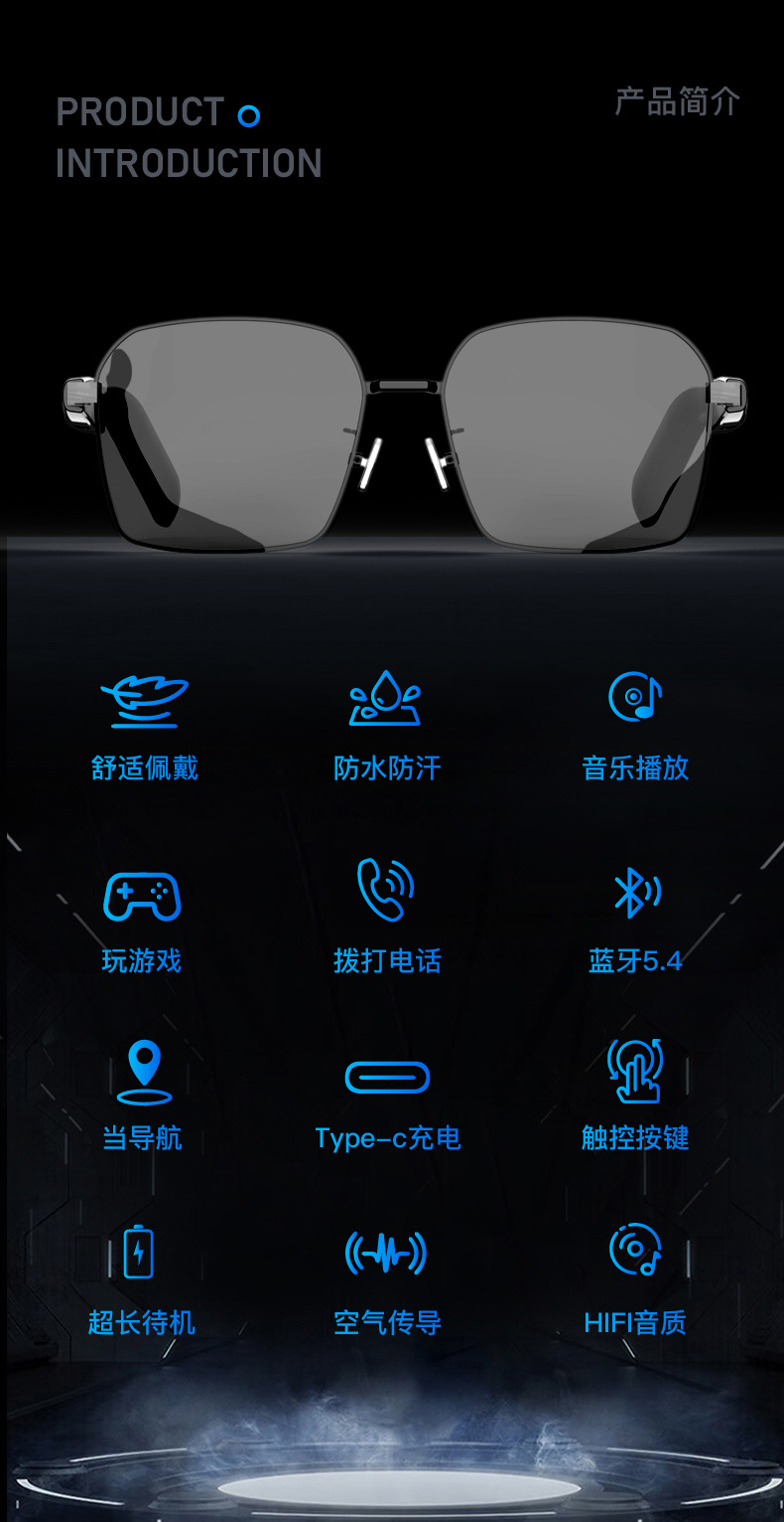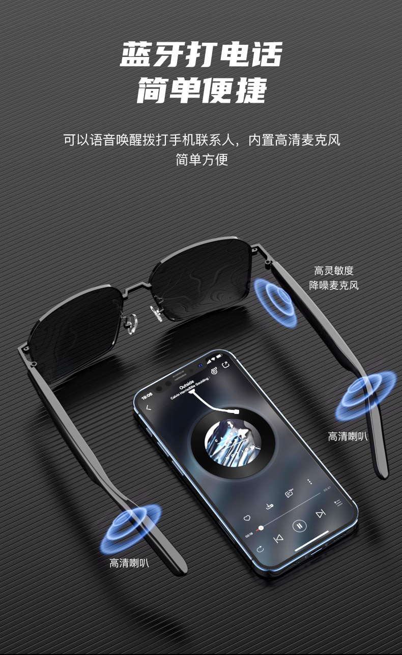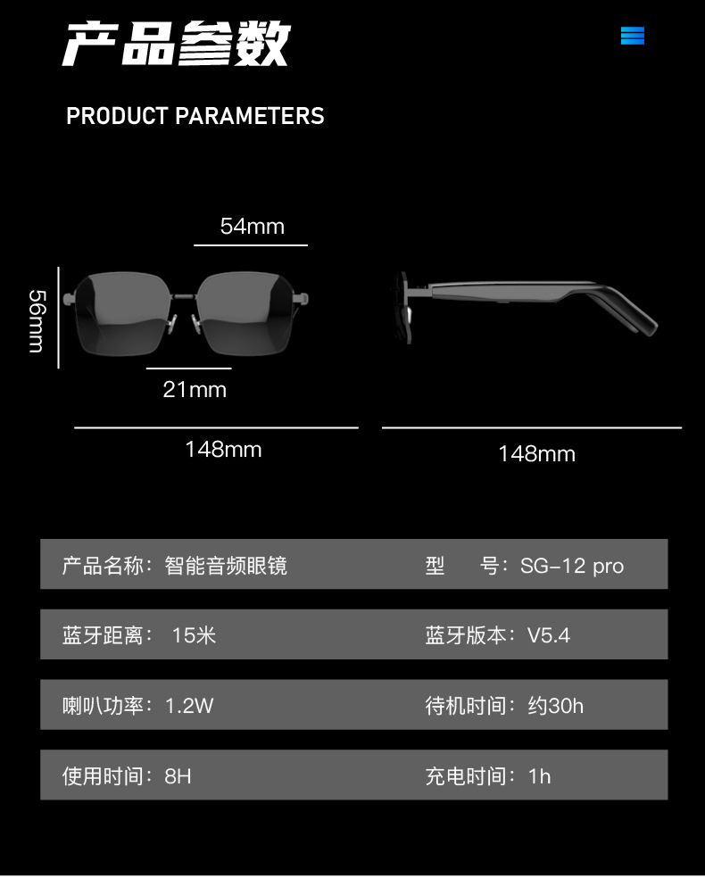 2025 новых Bluetooth-умных аудио очков SG-12pro для прослушивания музыки, звонков и игр