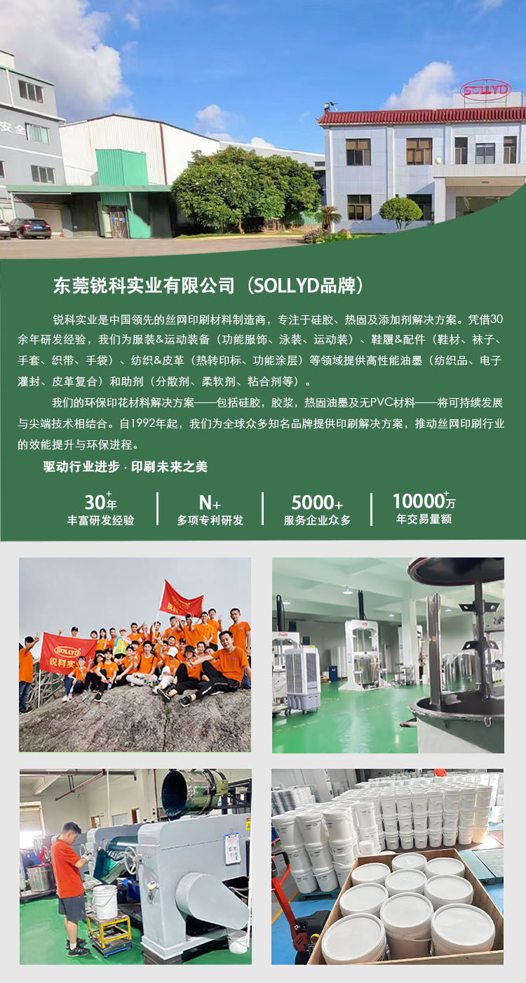 1、丝印硅胶适用于手工台丝印、自主印花机丝印及织带机印的服装、袜子、帽子、织带等的防滑、防水、装饰等效果。