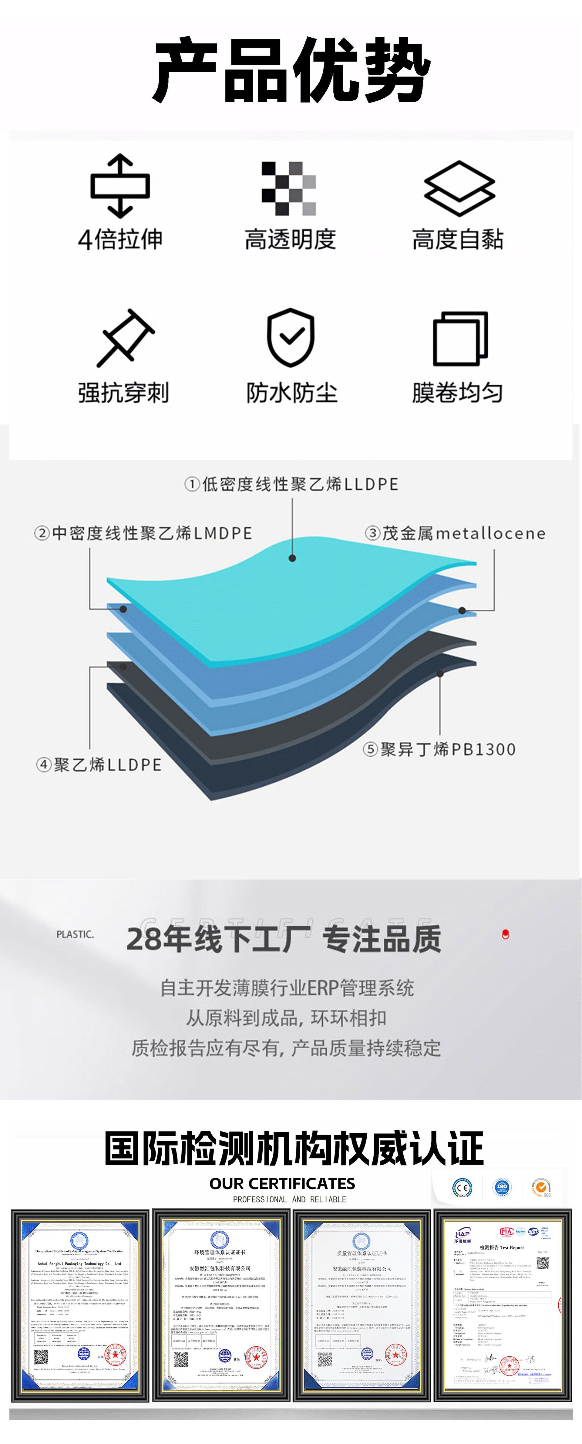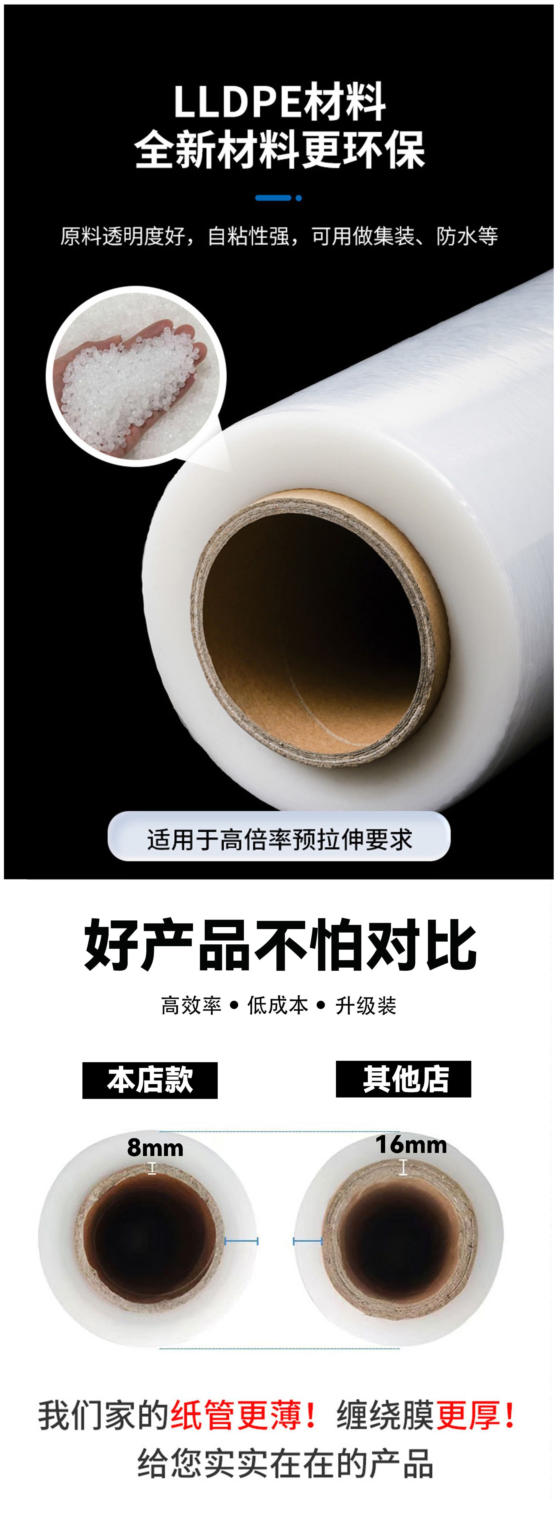 ПЭ стрейч-пленка для упаковки, промышленный рулон 50 см, прозрачная, высокая вязкость, не рвется, оптовая продажа от производителя логистической стрейч-пленки