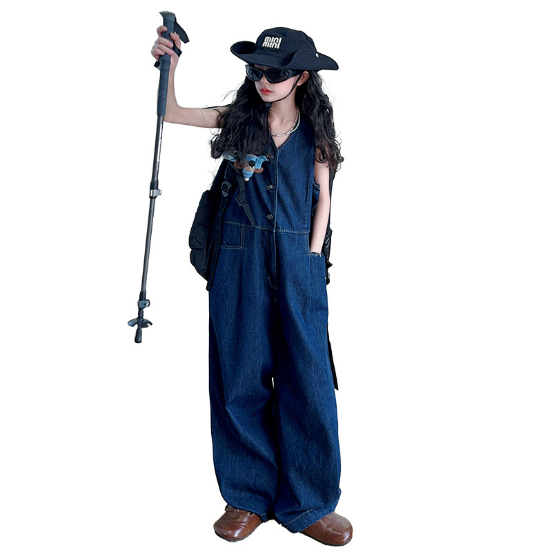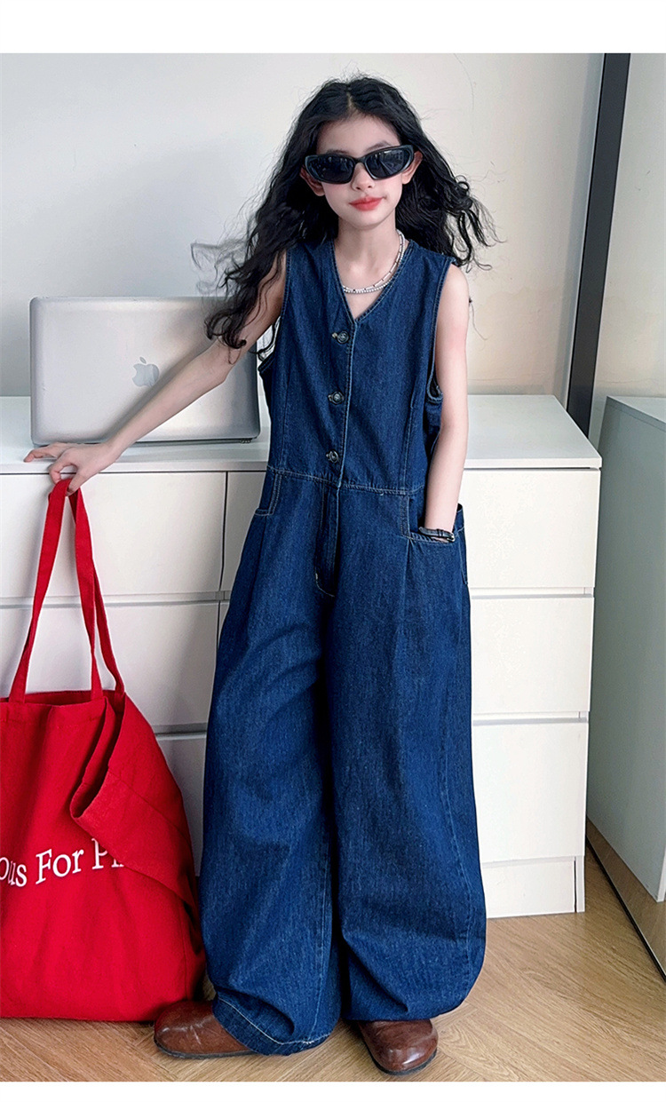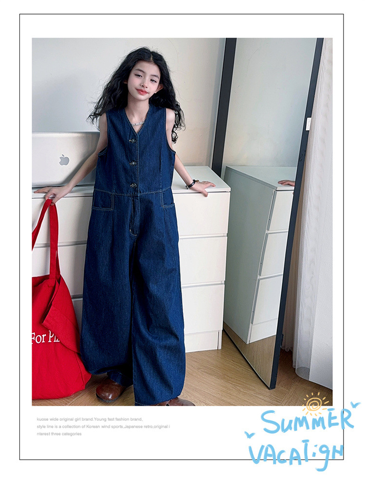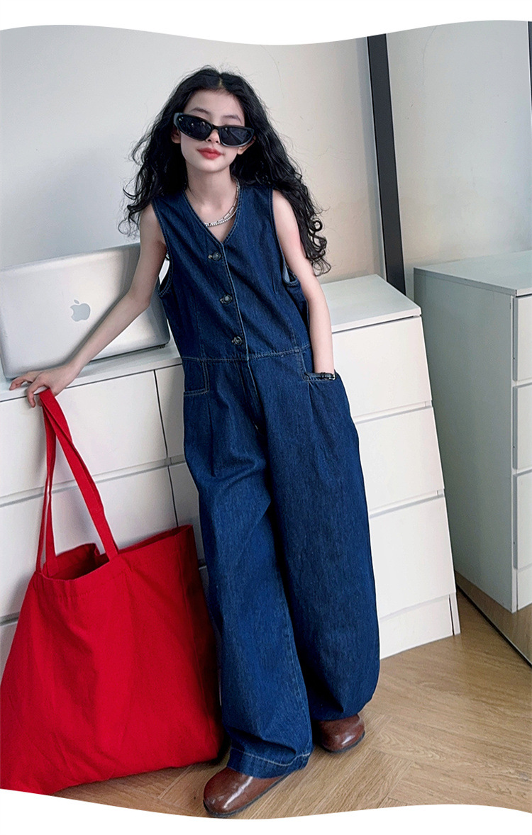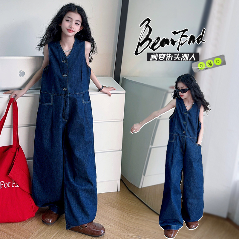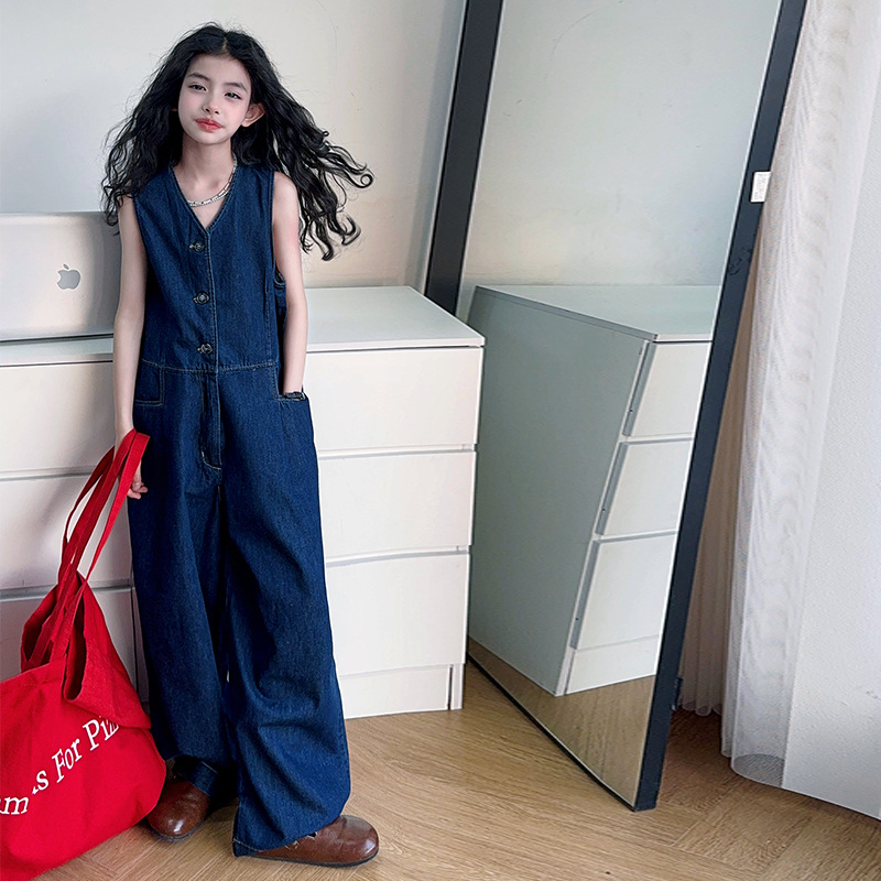 Летний новый корейский стиль свободный комбинезон для девочек 2025, простой модный джинсовый комбинезон в стиле ins