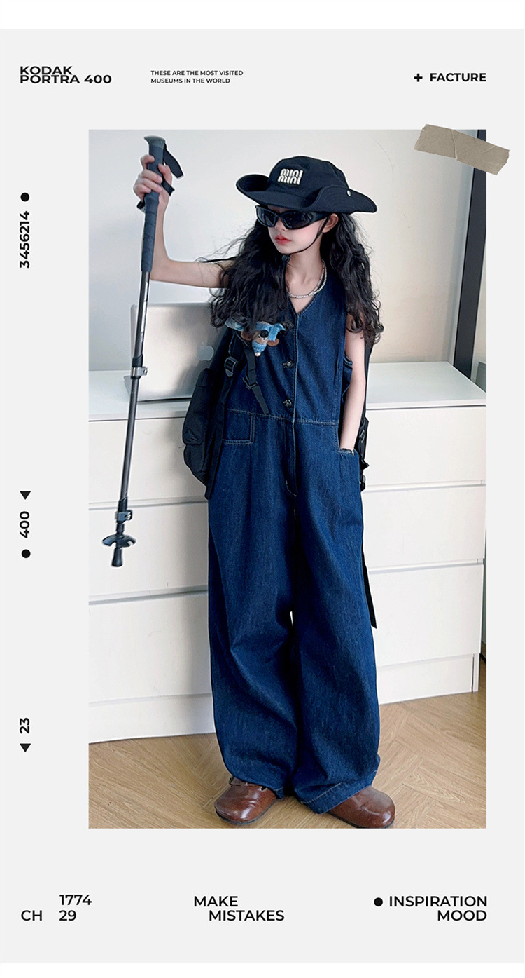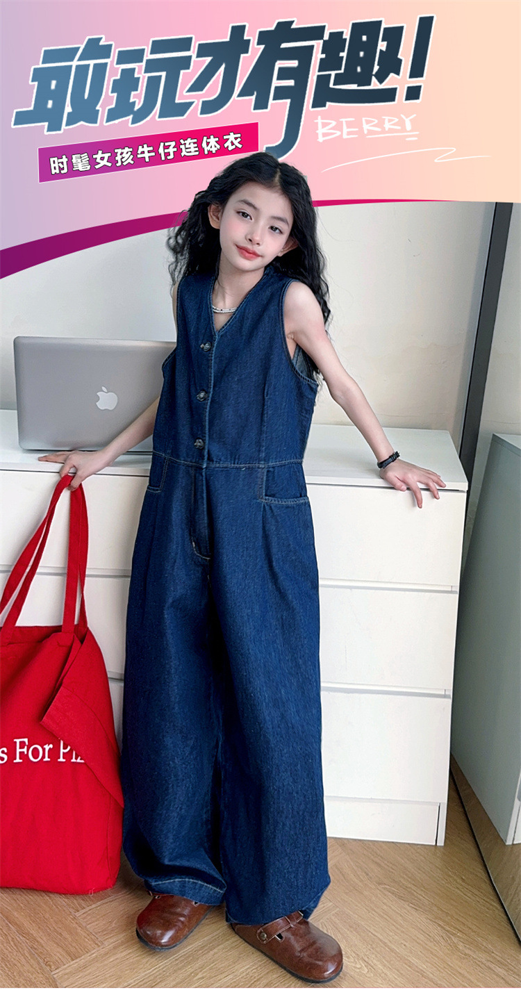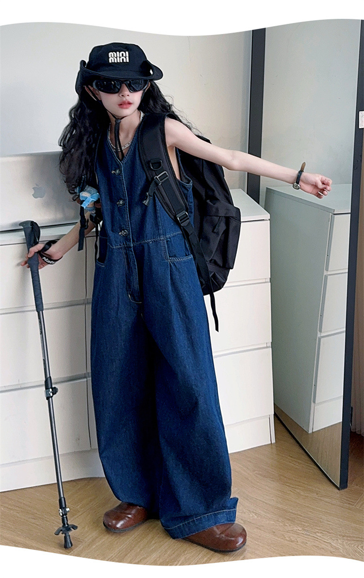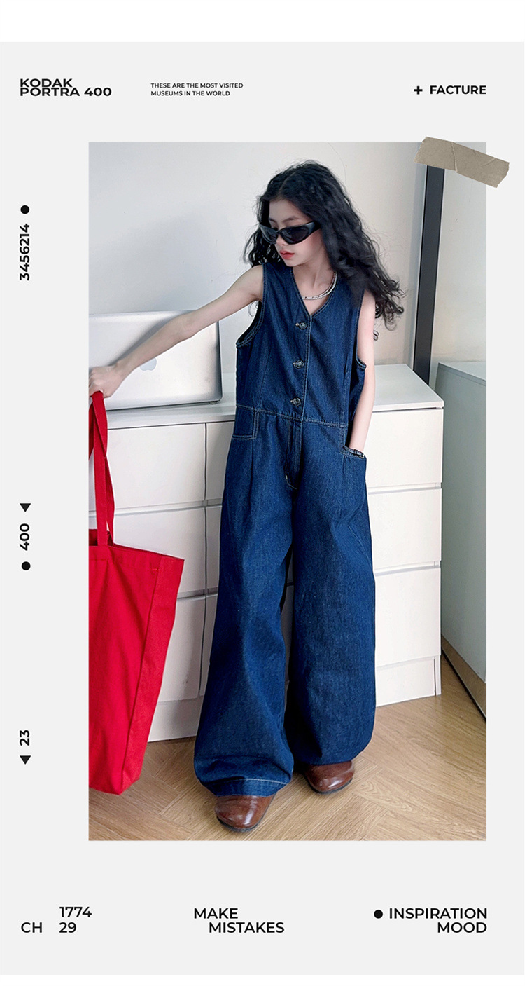 Летний новый корейский стиль свободный комбинезон для девочек 2025, простой модный джинсовый комбинезон в стиле ins