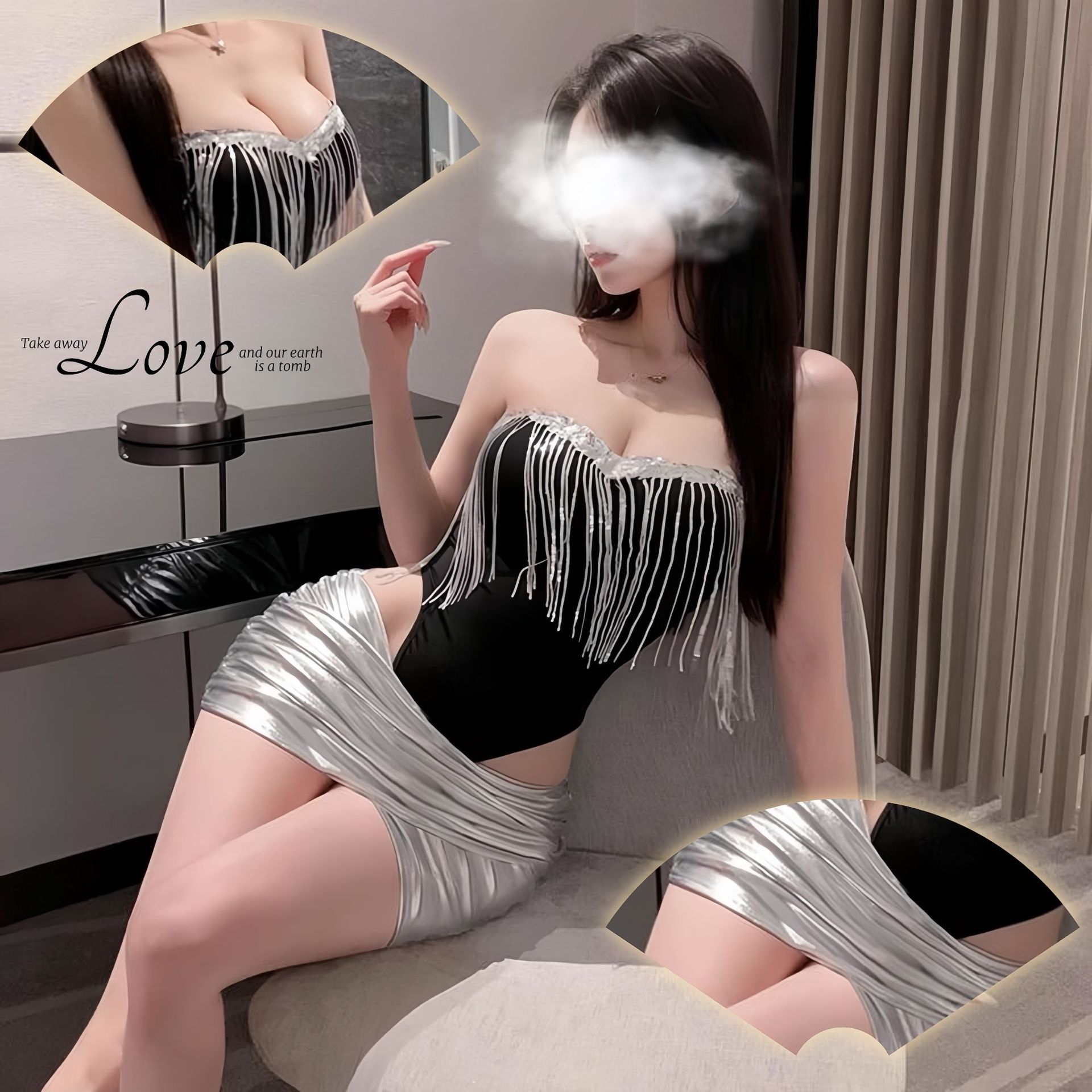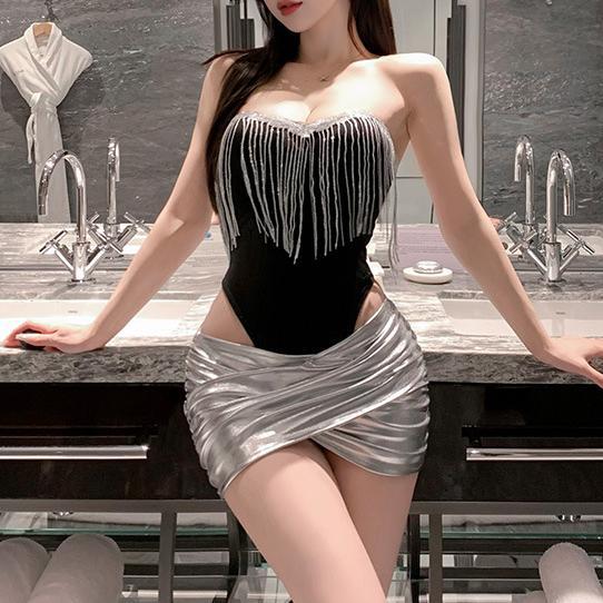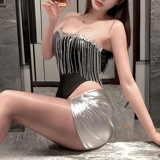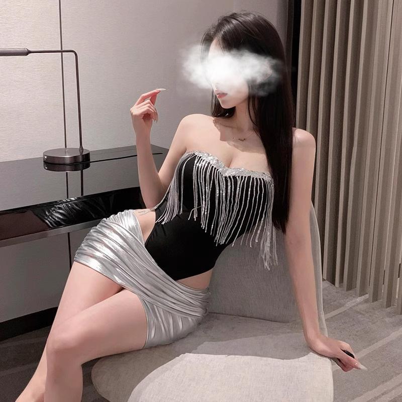 Новые сексуальные пижамы для женщин, топ с кисточками, цельный костюм со скрытыми пуговицами, юбка, красотка для ночного клуба, тонкая униформа, сексуальная