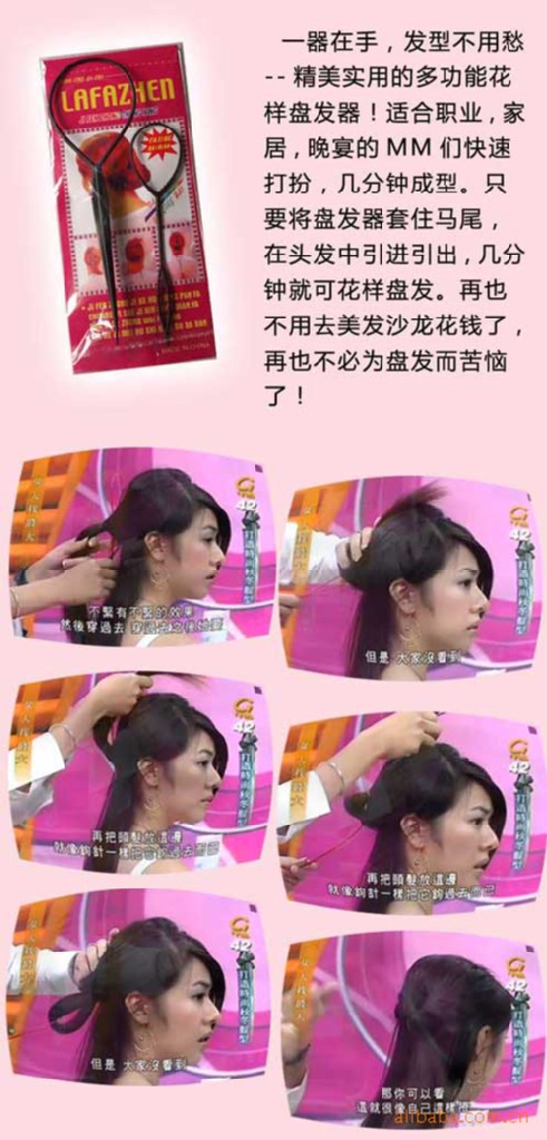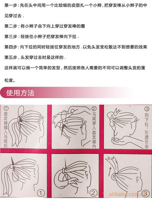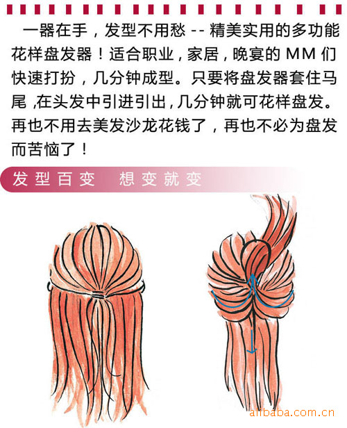 [用法]:自带使用说明和图示 只要将盘发器套住马尾,