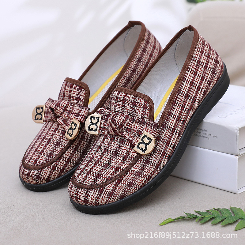 Пекинские тканевые туфли, на плоской подошве, весенне-осенние повседневные туфли с неглубоким вырезом для мам, женские туфли без застежек на мягкой подошве для женщин среднего и пожилого возраста.
