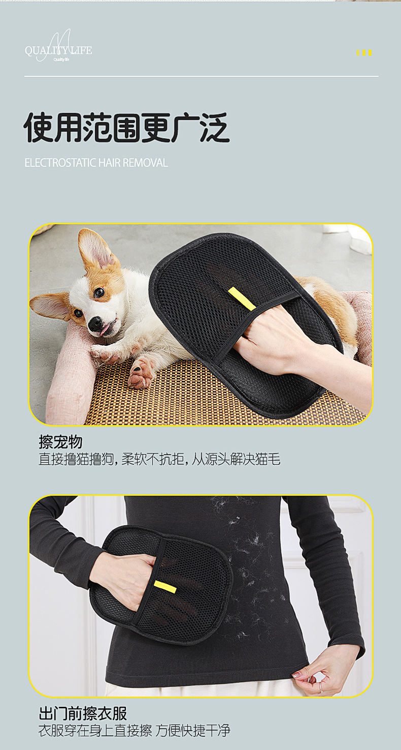 Домашние животные Электростатические перчатки для удаления волос Двусторонняя щетина