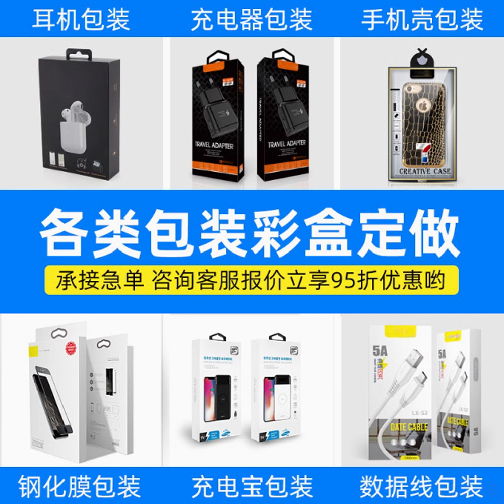 Цветная коробка для упаковки цифровых продуктов 3C, коробка для наушников, коробка для кабеля передачи данных, цветная коробка с окном, белая картонная коробка, печать цифровой упаковки