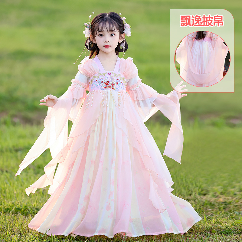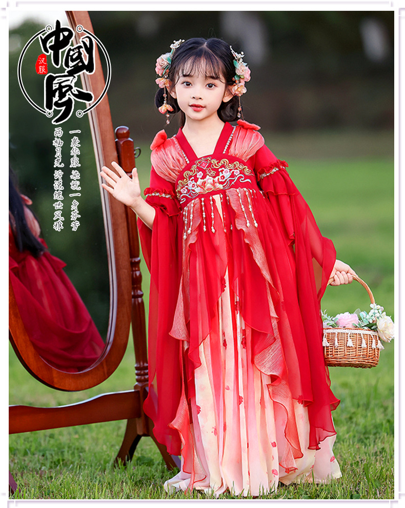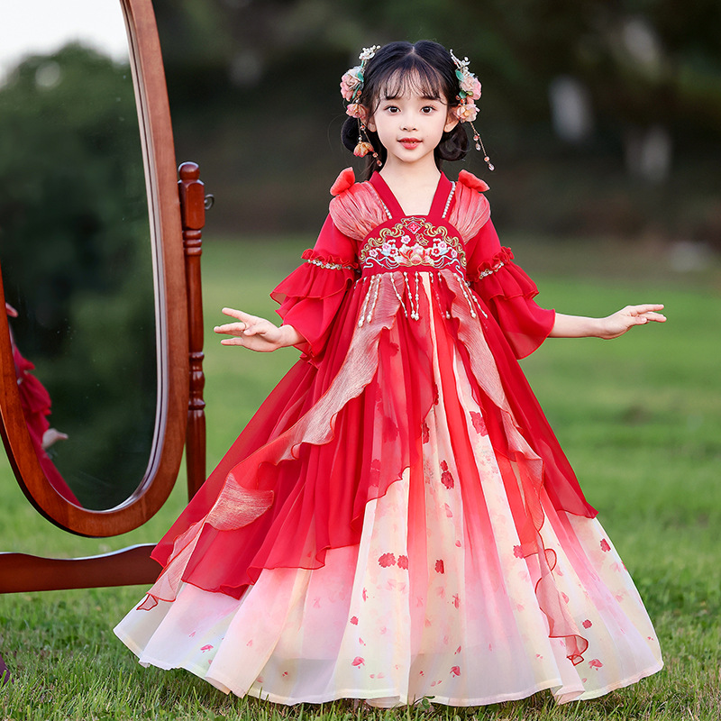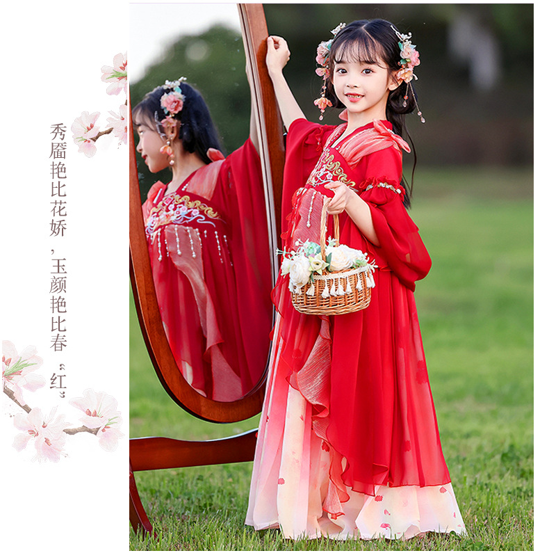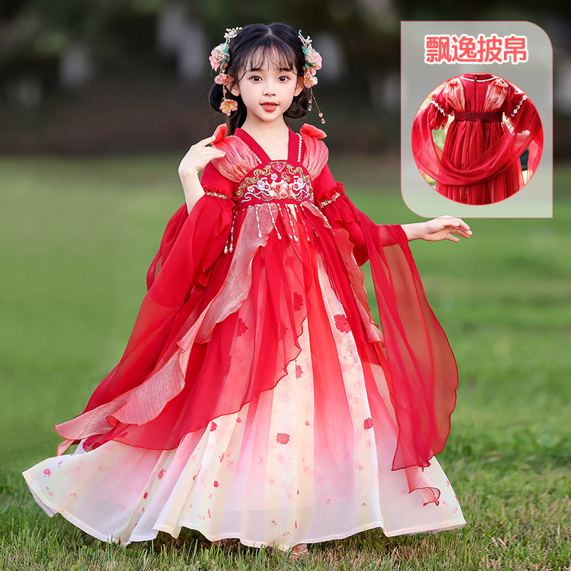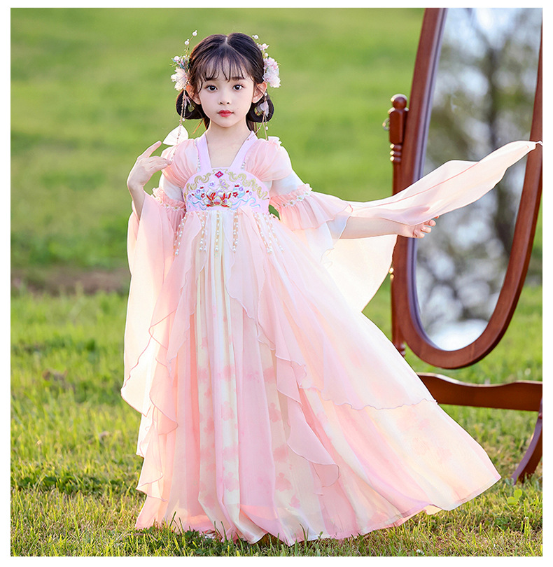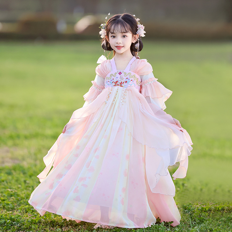 Летний стиль Hanfu для девочек, костюм Тан для маленьких девочек, платье принцессы в китайском стиле, детская одежда, юбка Super Fairy Ru.