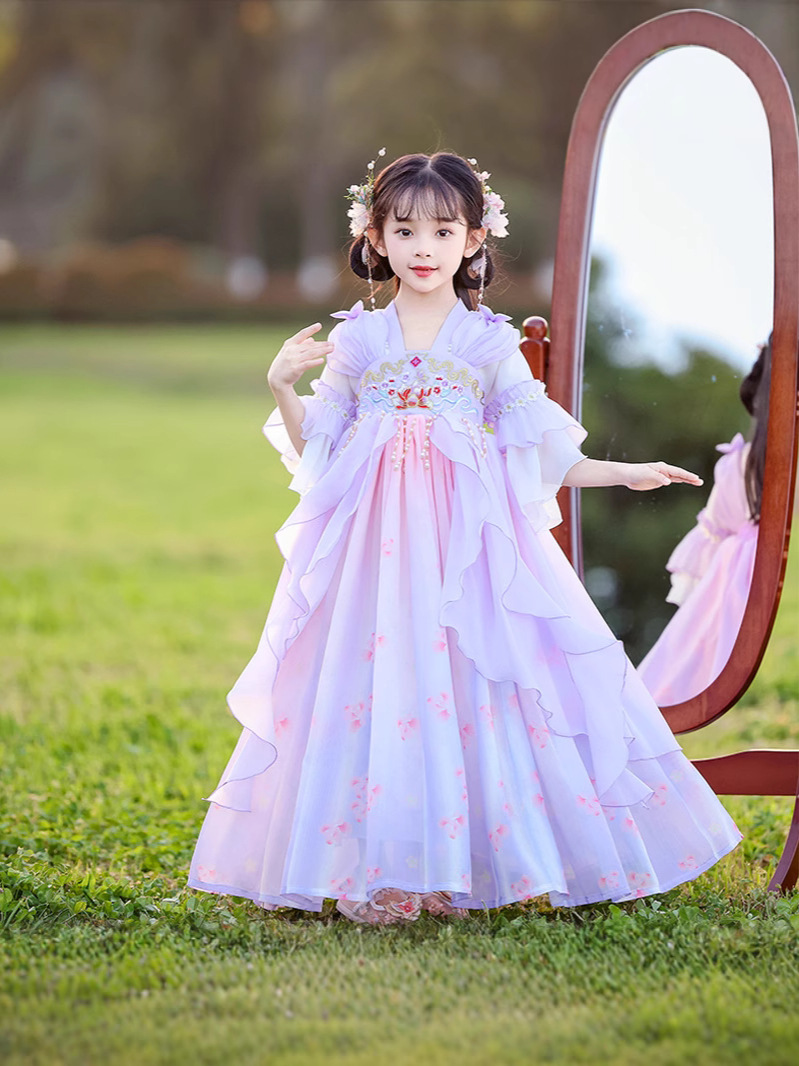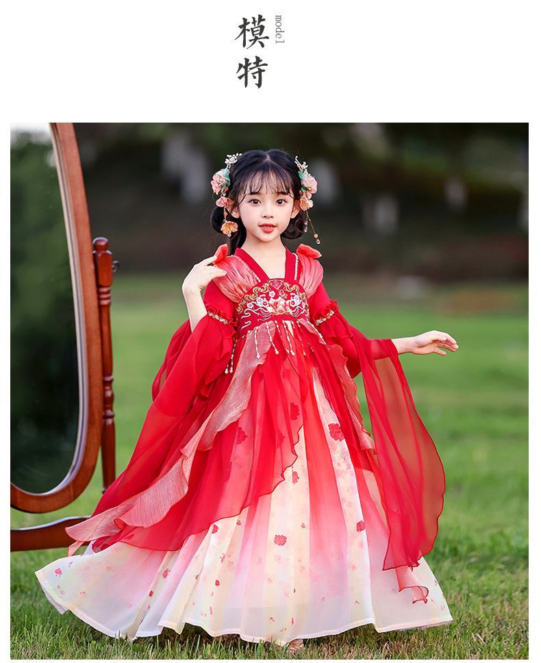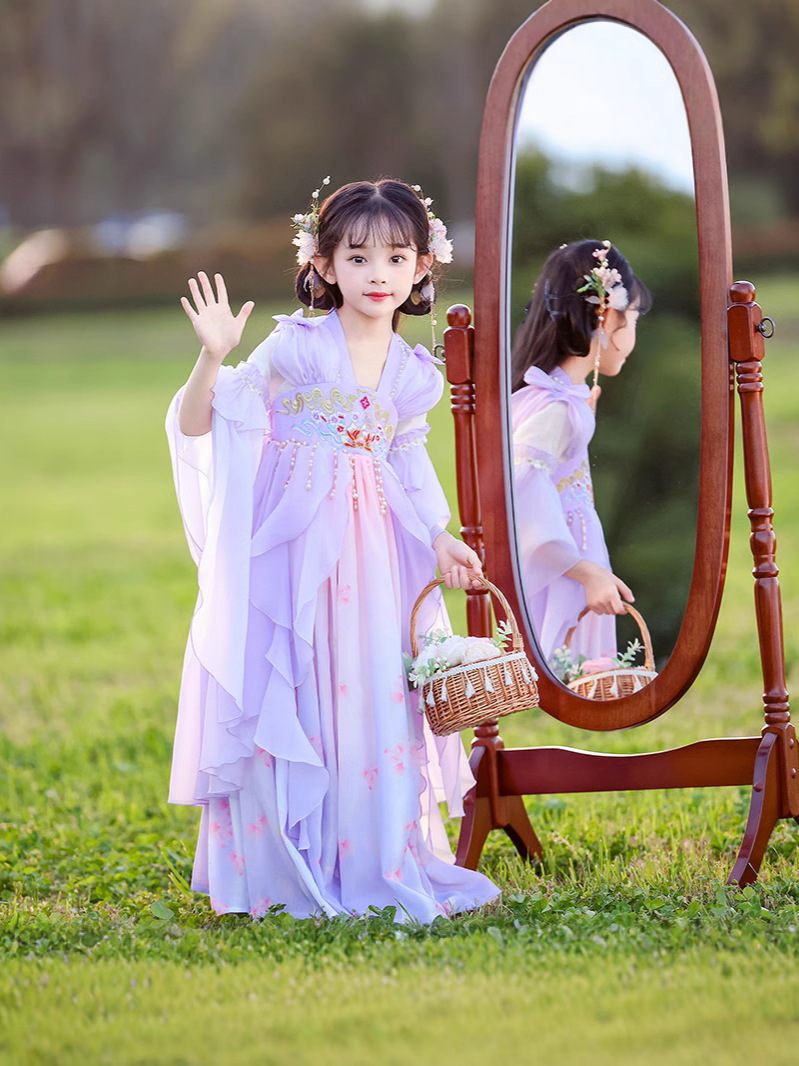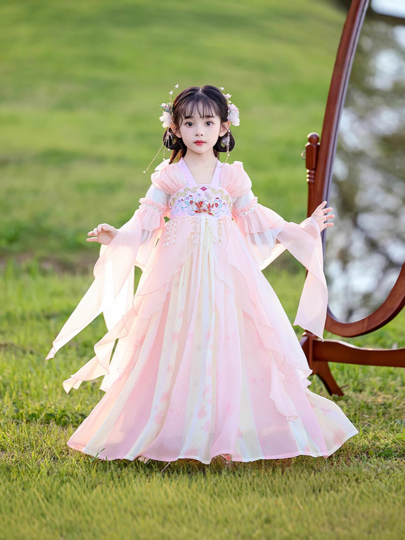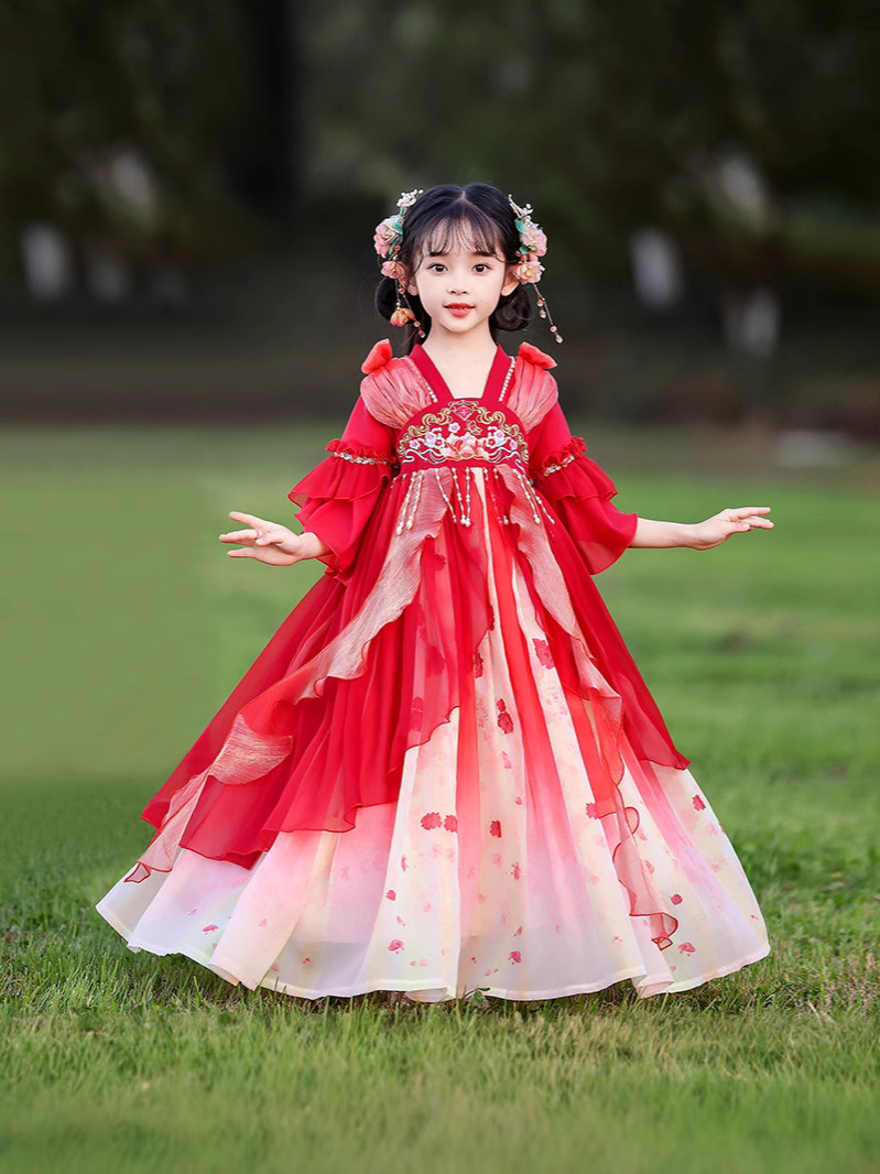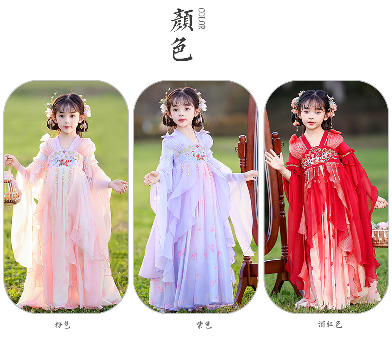 Летний стиль Hanfu для девочек, костюм Тан для маленьких девочек, платье принцессы в китайском стиле, детская одежда, юбка Super Fairy Ru.