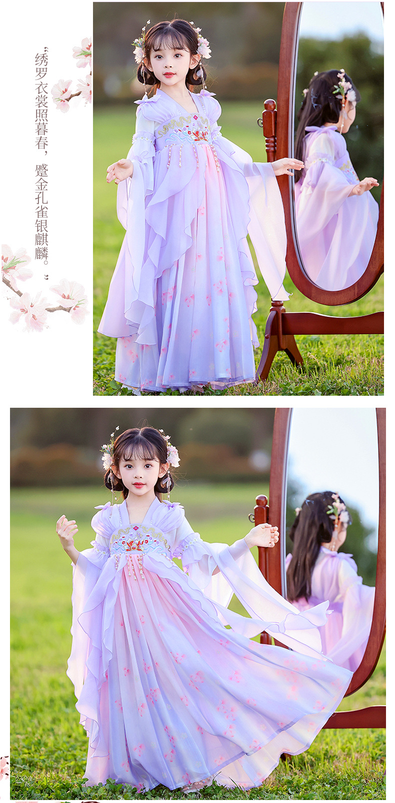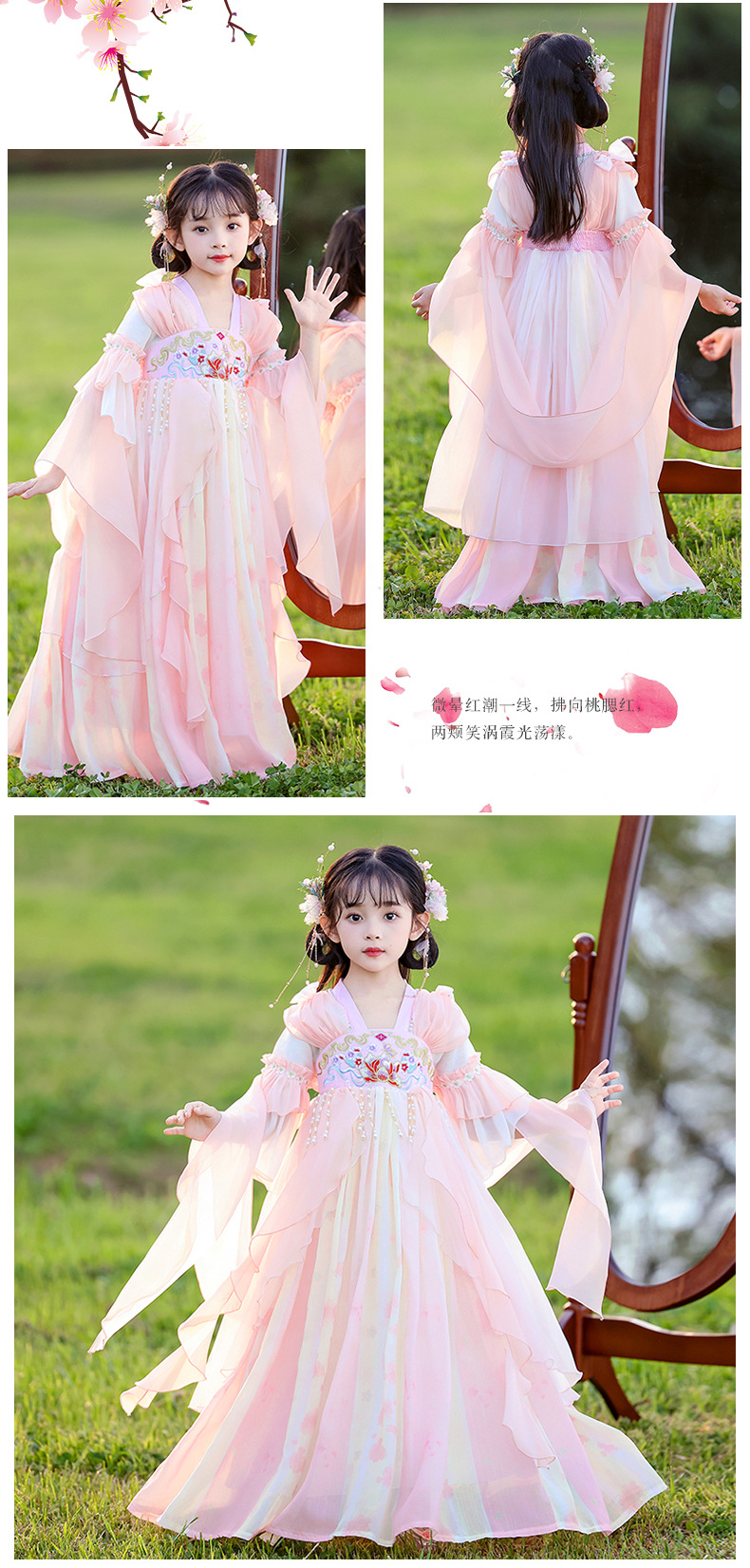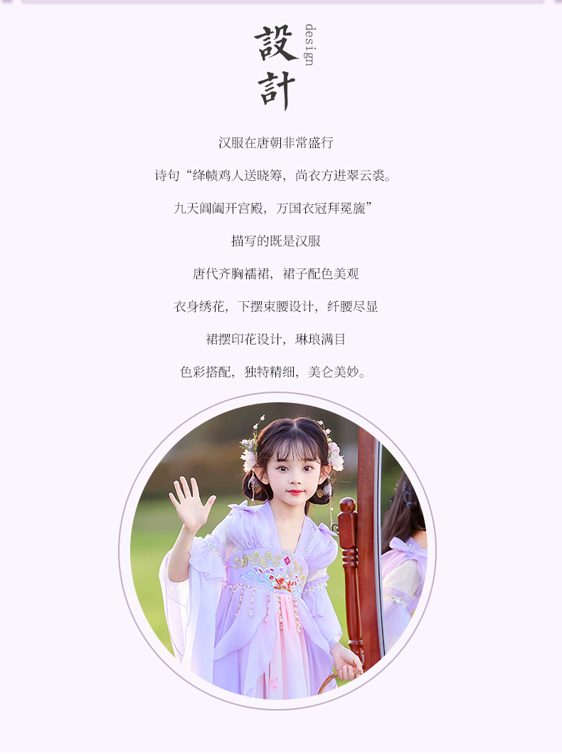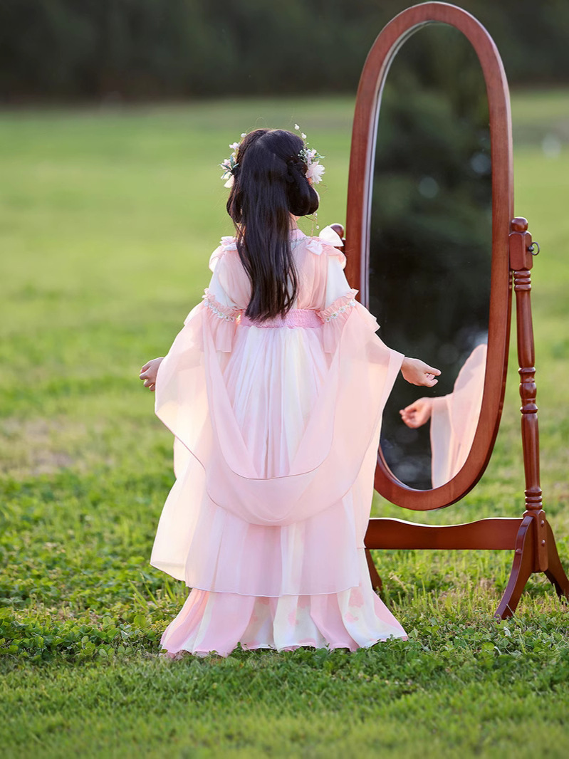 Летний стиль Hanfu для девочек, костюм Тан для маленьких девочек, платье принцессы в китайском стиле, детская одежда, юбка Super Fairy Ru.