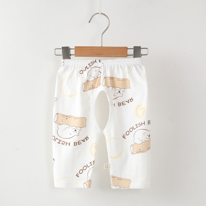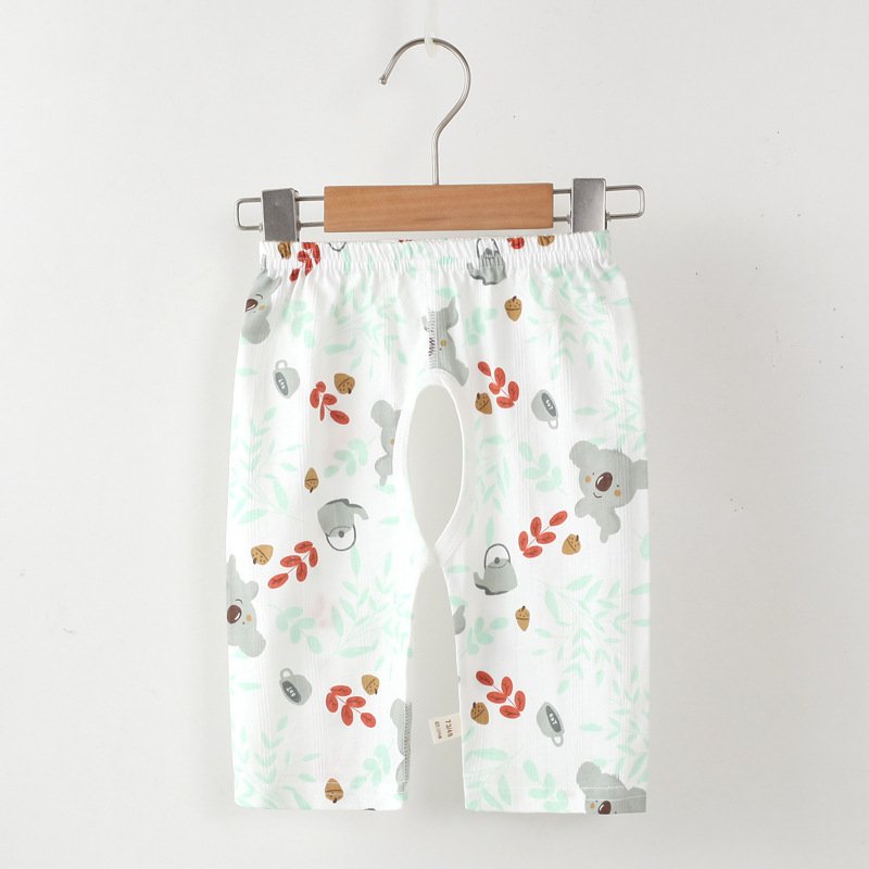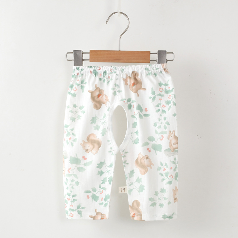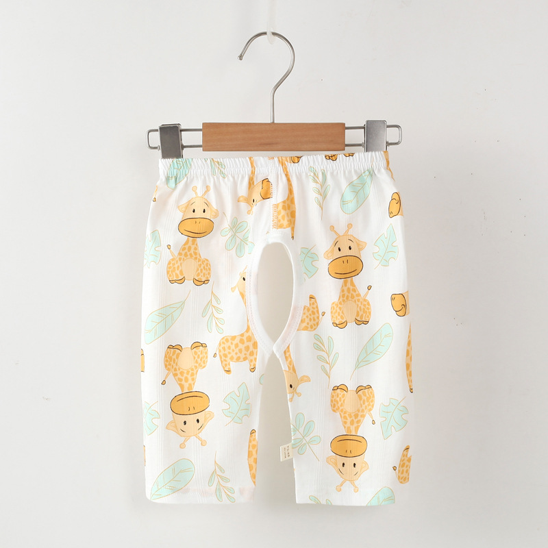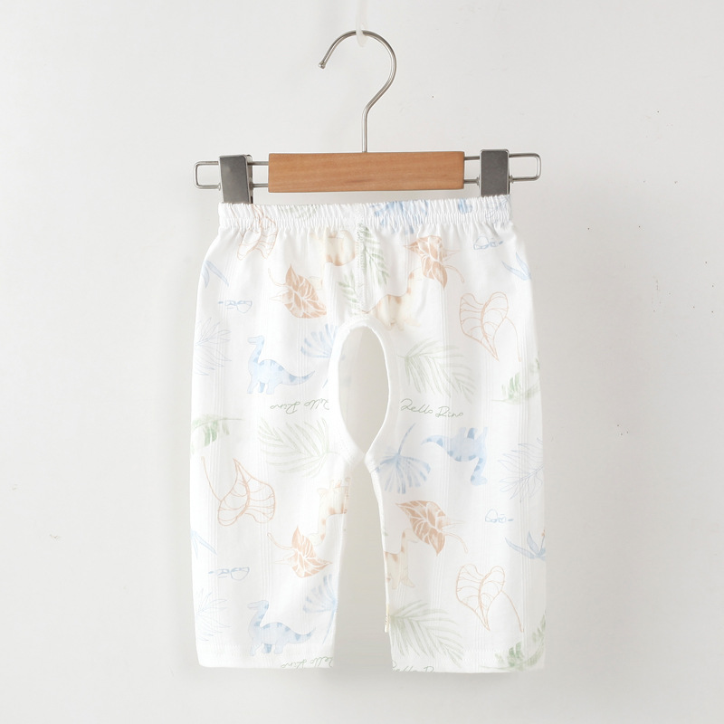 Детские летние укороченные брюки с открытой промежностью, детские тонкие бесшовные укороченные шорты из чистого хлопка с жаккардовым узором, детские штаны для сна унисекс