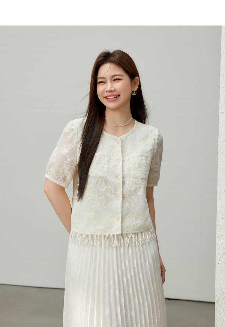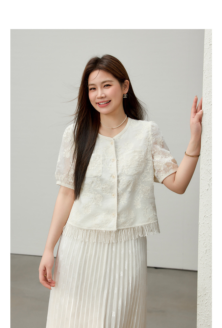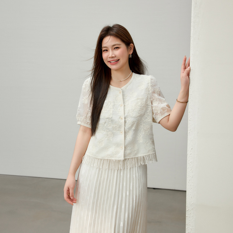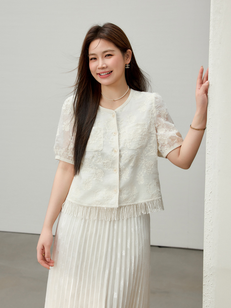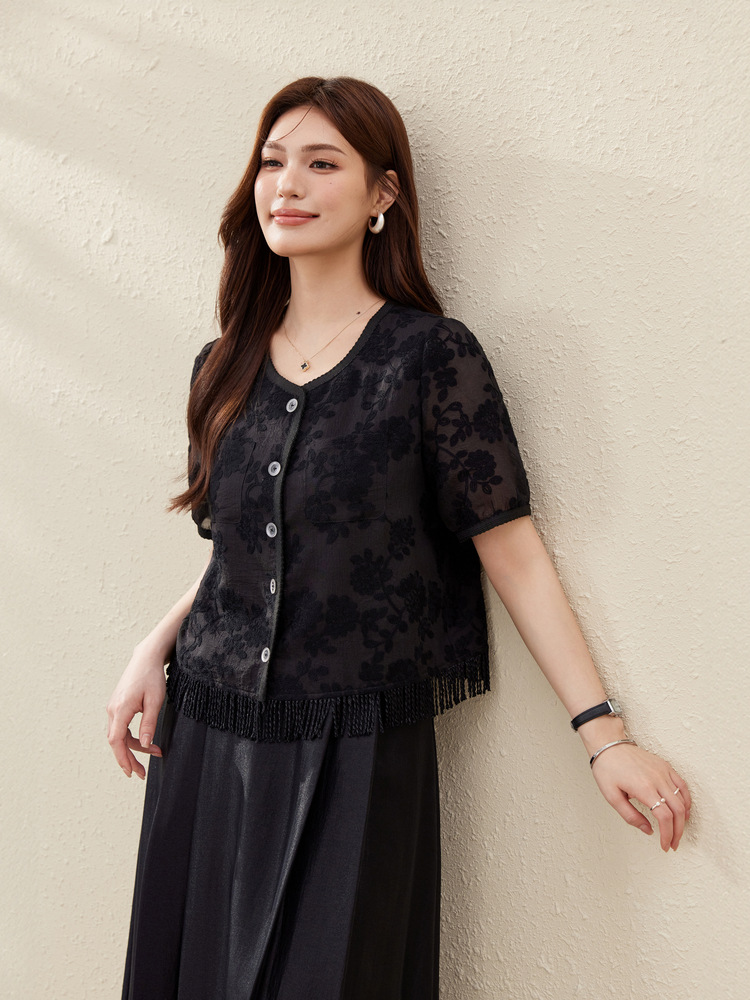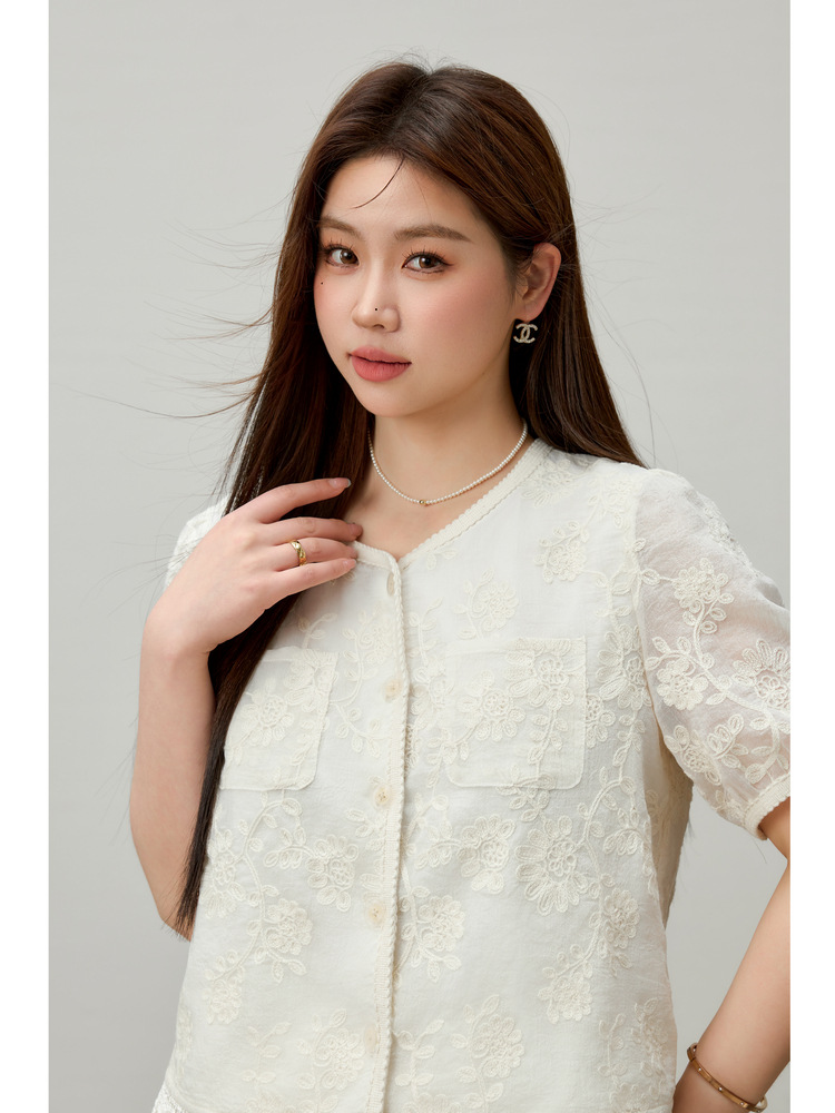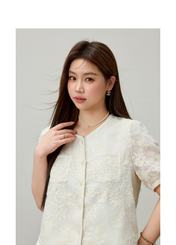 [Cicada Wing Mist Whisper] Легкая кружевная рубашка с вышивкой в этническом стиле, облегающая рубашка больших размеров, новый летний стиль для женщин больших размеров.