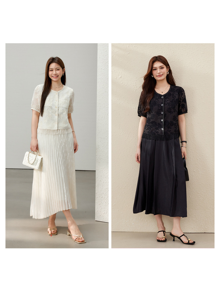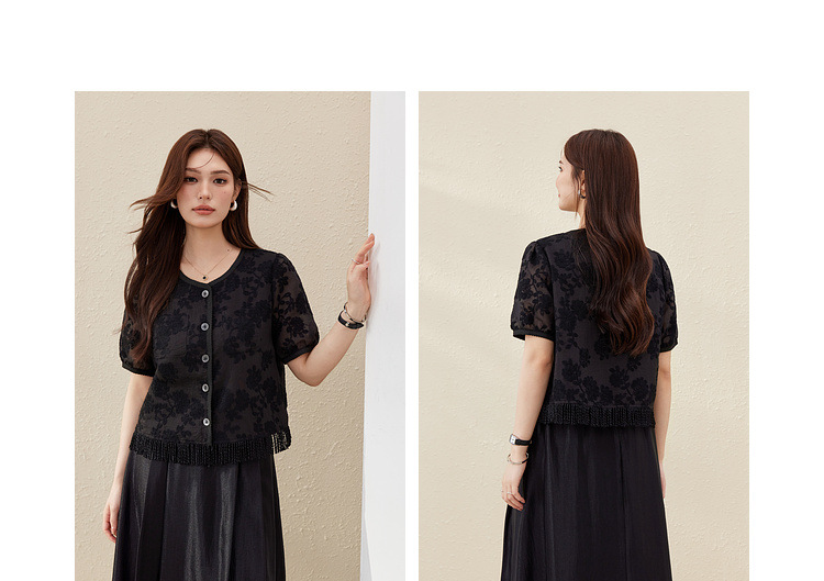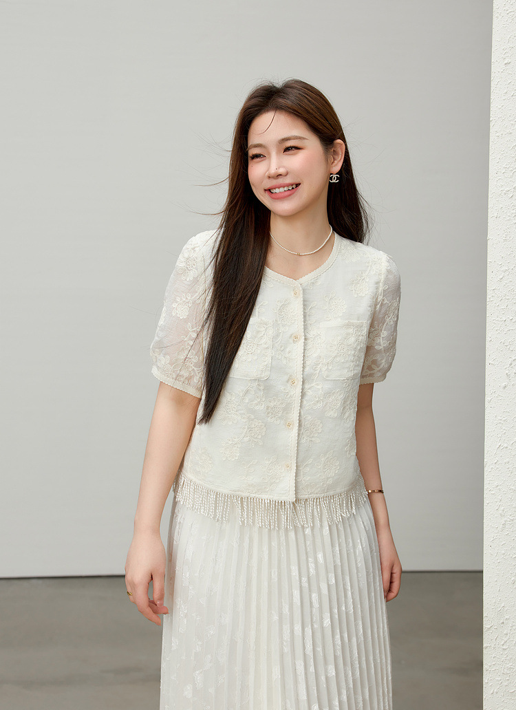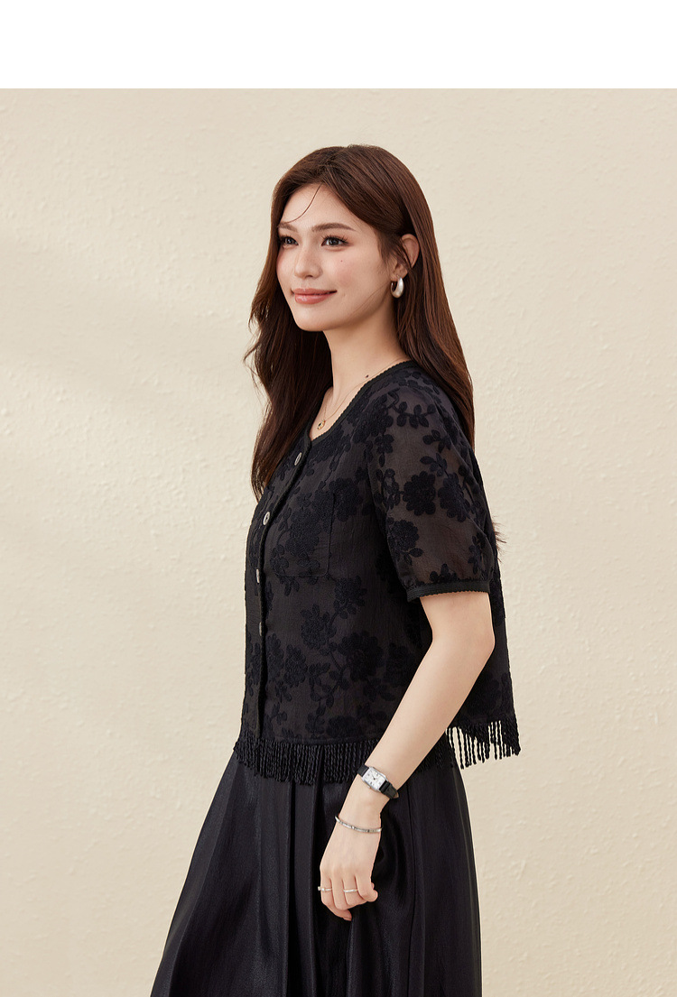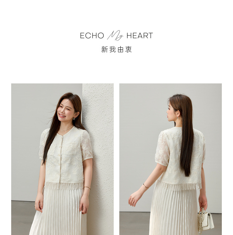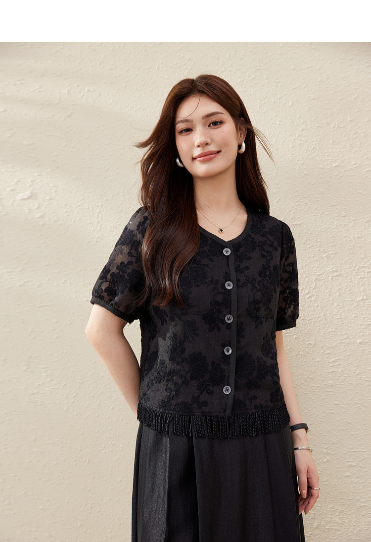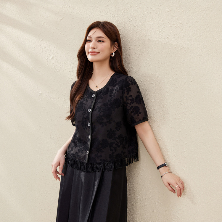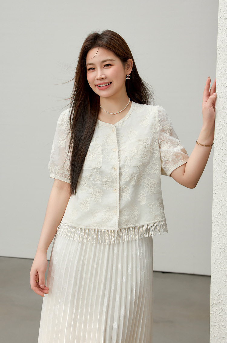 [Cicada Wing Mist Whisper] Легкая кружевная рубашка с вышивкой в этническом стиле, облегающая рубашка больших размеров, новый летний стиль для женщин больших размеров.
