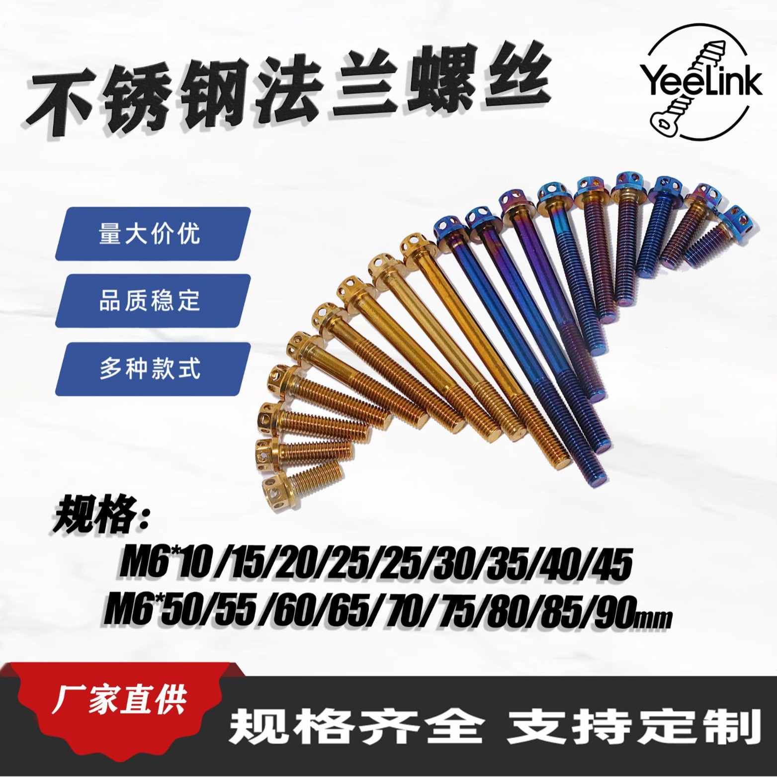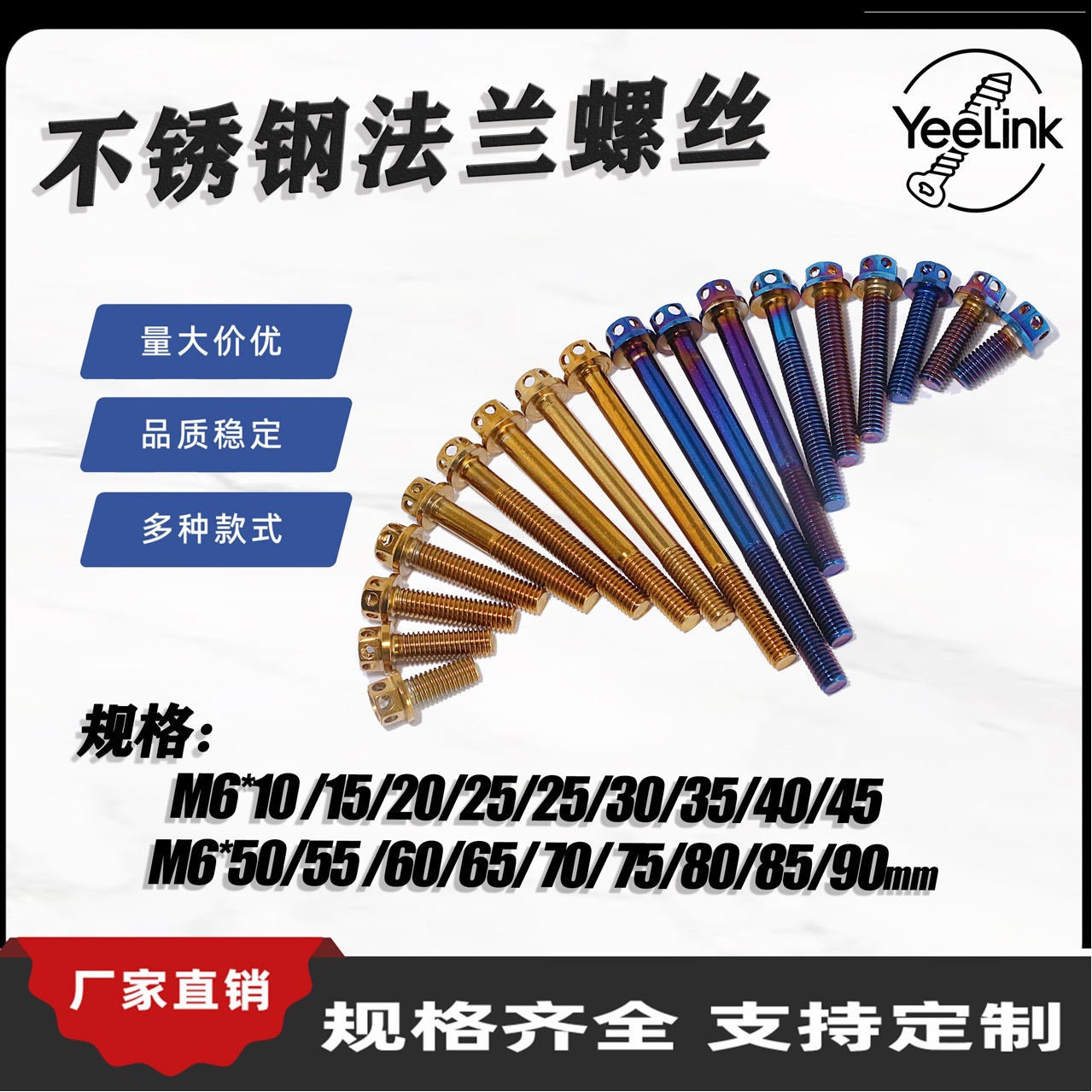 Оптовая продажа модифицированных винтов из нержавеющей стали 304 с внешним шестигранником и титановых винтов для мотоциклов и электромобилей M6