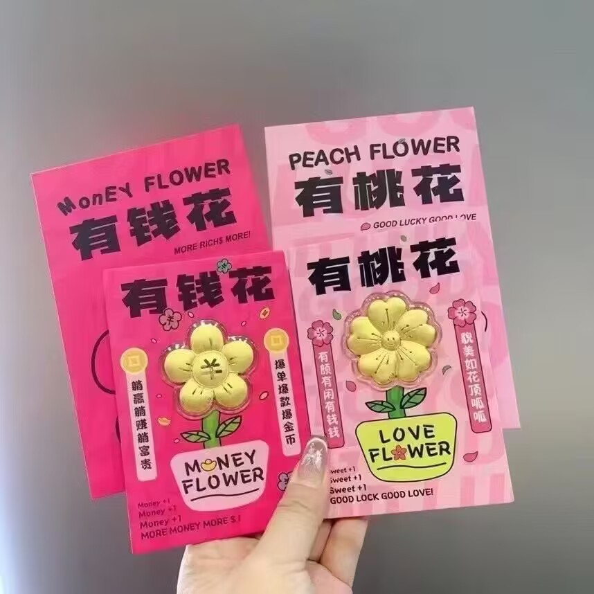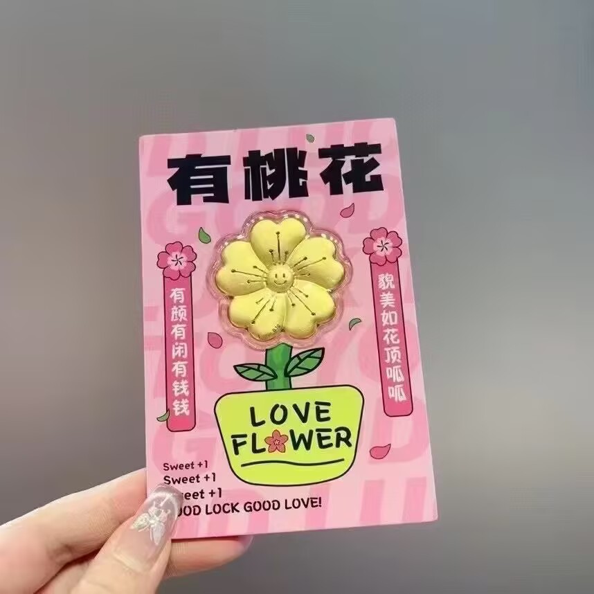 Чистое золото 999, вы можете потратить деньги на золотые хлопья персикового цвета, бессмертные цветочные украшения, праздничные подарки, тот же стиль Сяохонга.