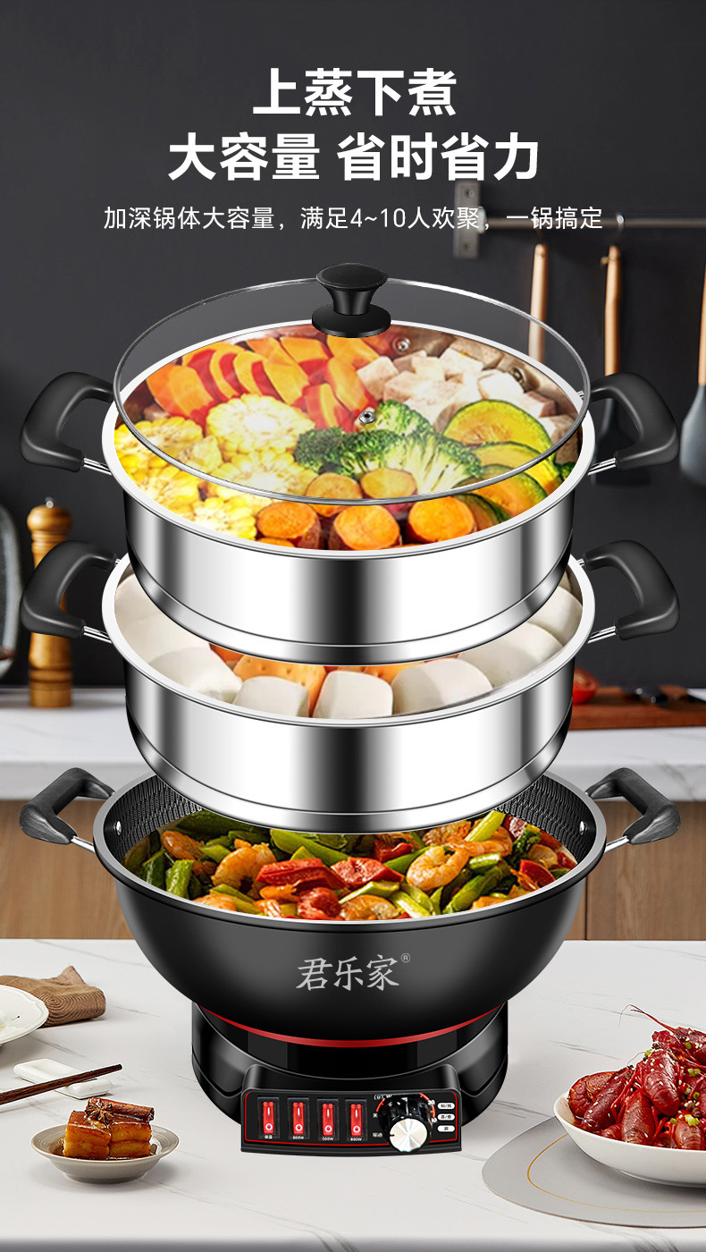 Сотовая антипригарная электрическая сковорода, приготовленная на пару жареная электрическая кастрюля, большая мощность, многофункциональная бытовая электрическая сковорода