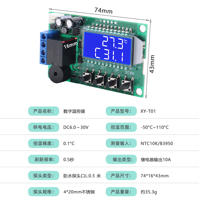 Высокоточный ЖК-дисплей XY-T01, цифровой термостат, модуль контроллера температуры, холодильный тропический экран дисплея