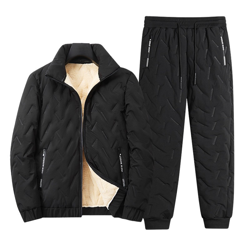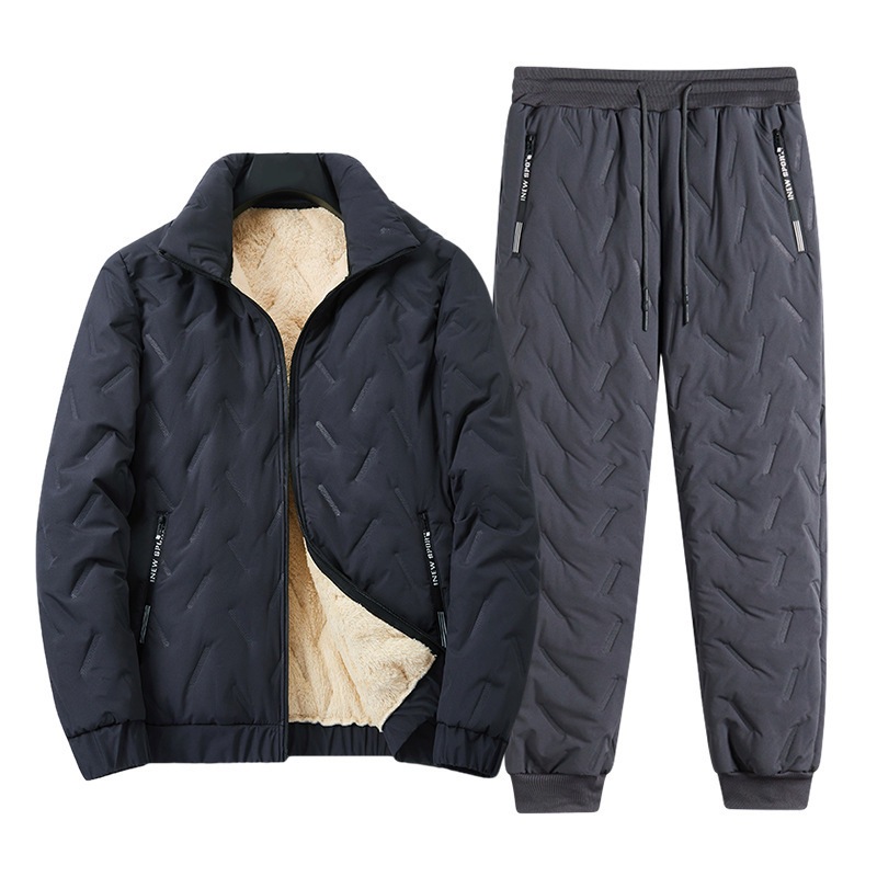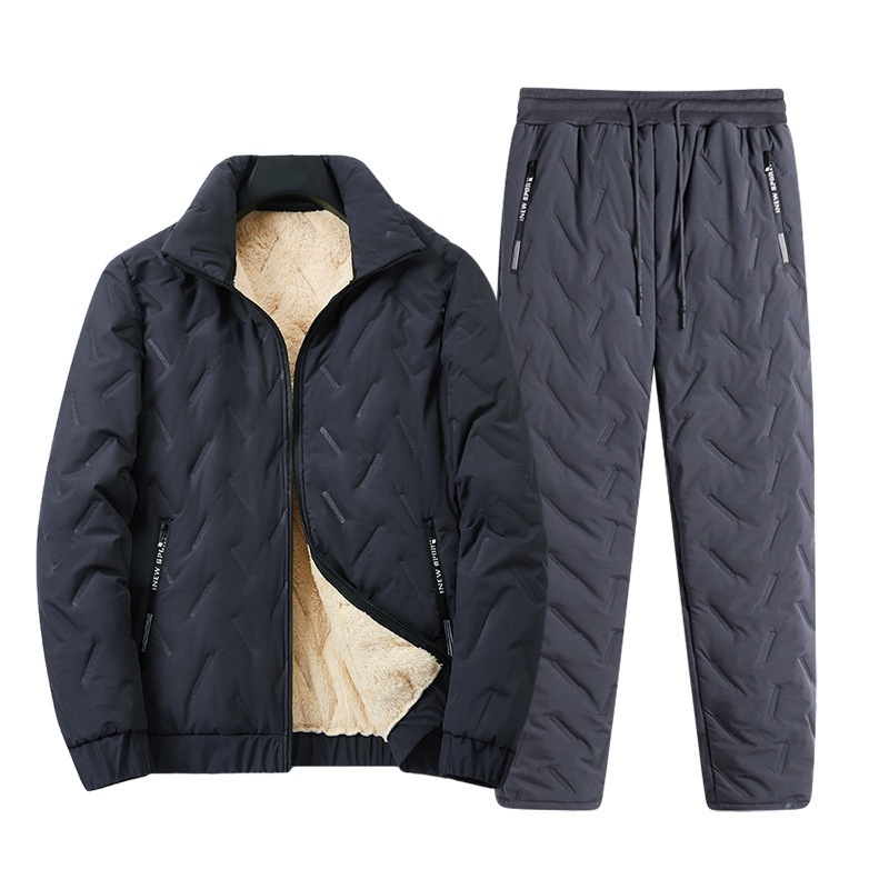 Зимний мужской костюм из хлопка, утолщенный, теплый, с кашемиром, пальто и брюки, полный комплект, двухкомпонентный костюм
