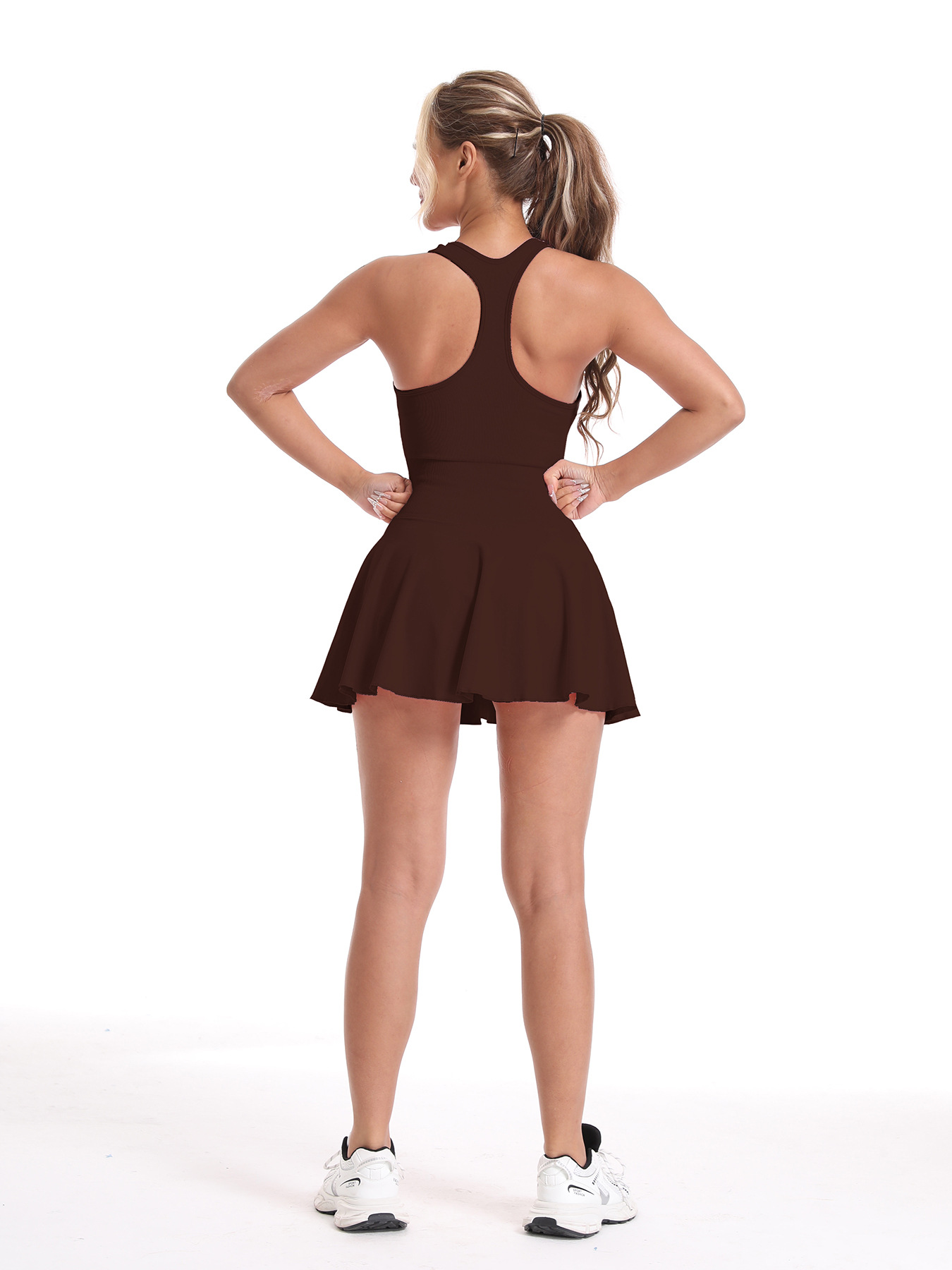 收腰版型下身裙子前下摆做了百褶设计