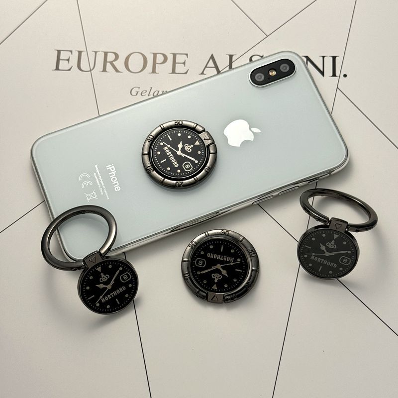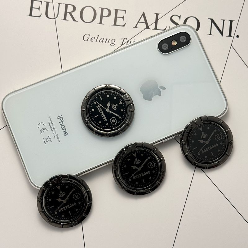 Черный держатель для часов из сплава с гальваническим покрытием для мобильного телефона, настольный автомобильный магнитный кольцевой ремень, мужской держатель для мобильного телефона, задняя наклейка