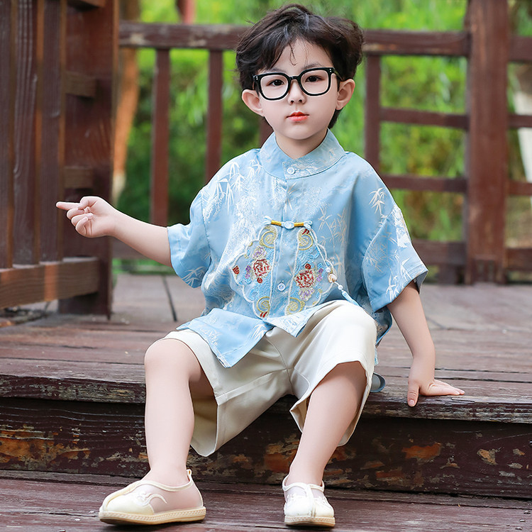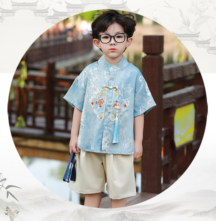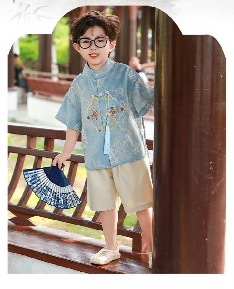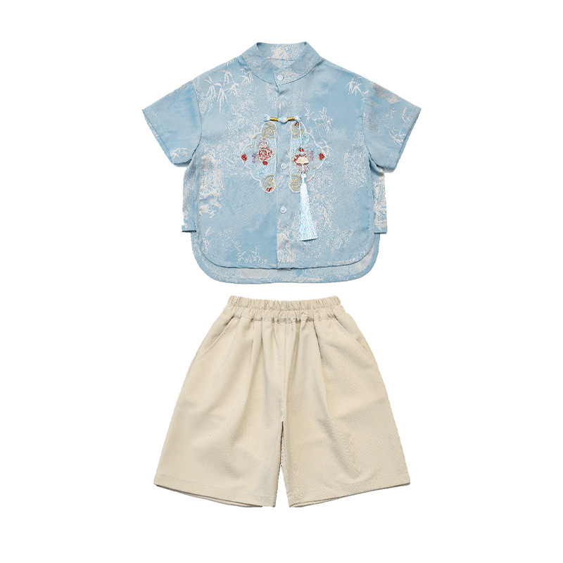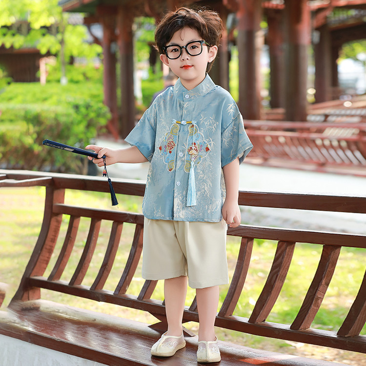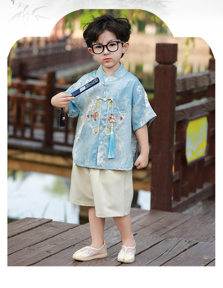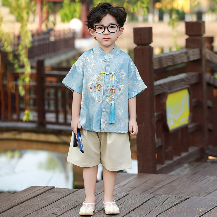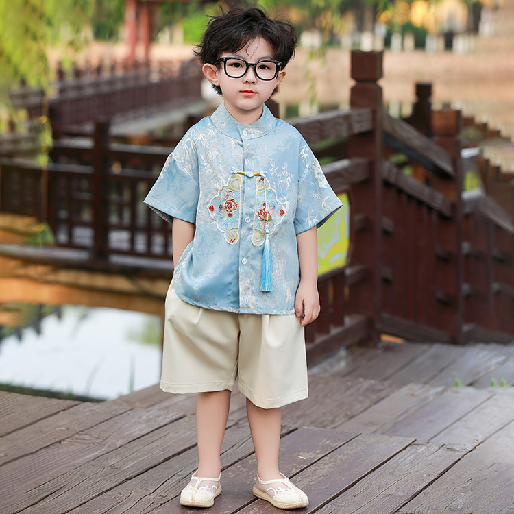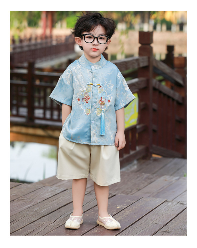 Мальчик Летний комплект с короткими рукавами 2025 новый ребенок красивый китайский стиль новые китайские шорты набор из двух частей