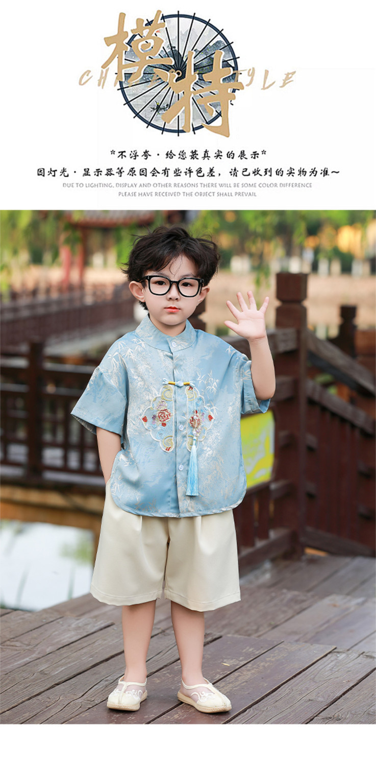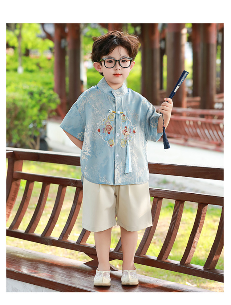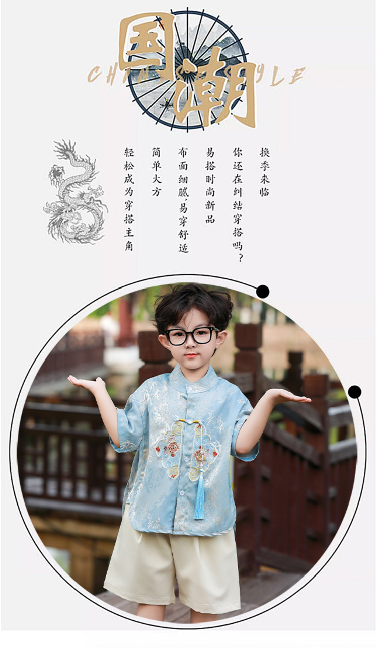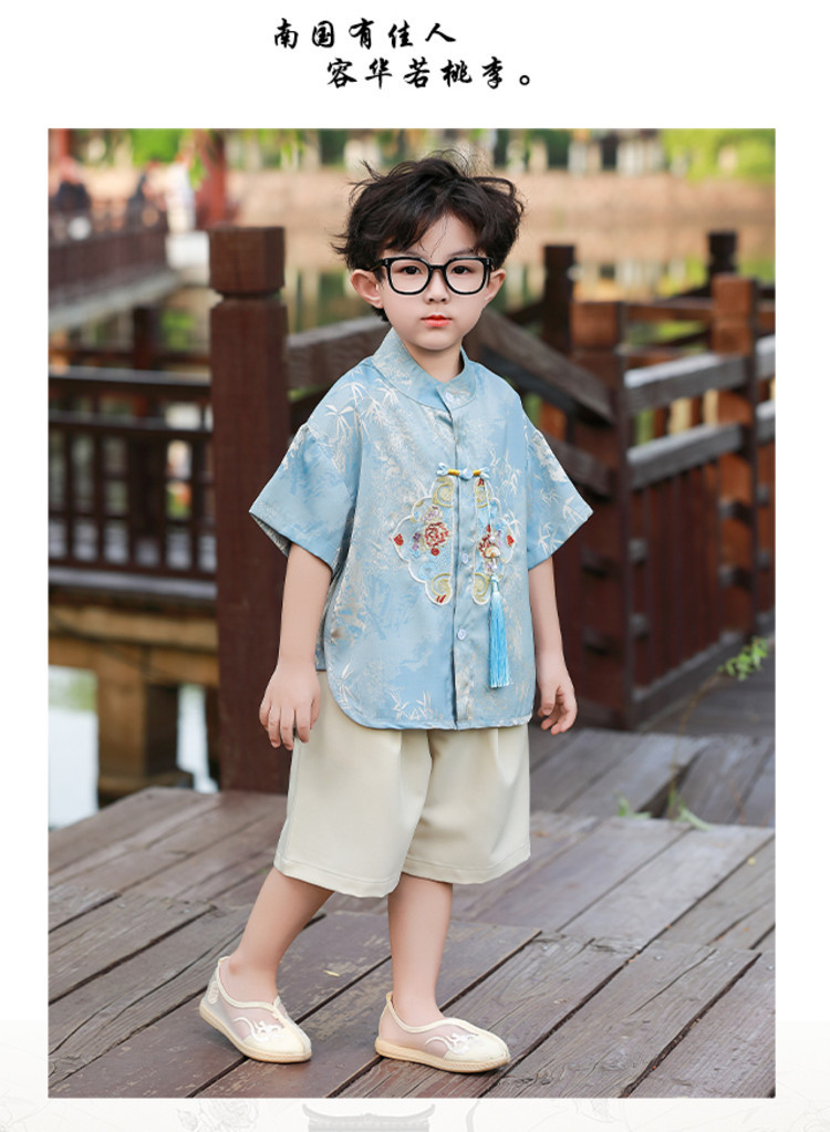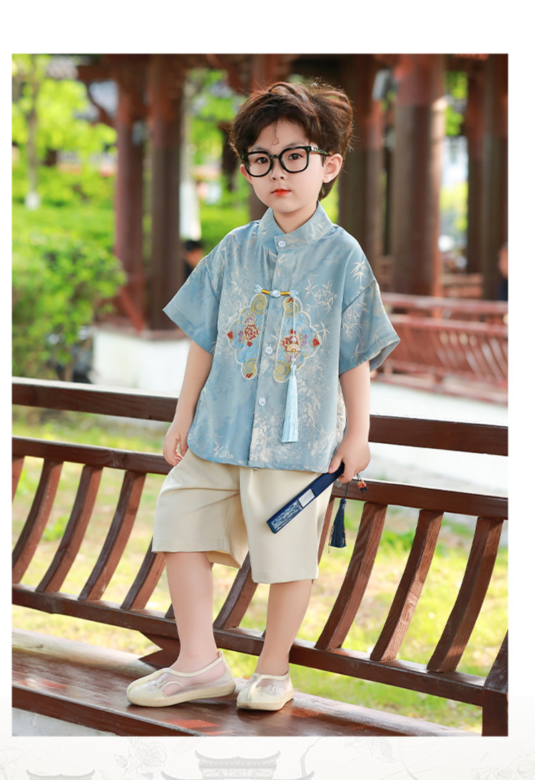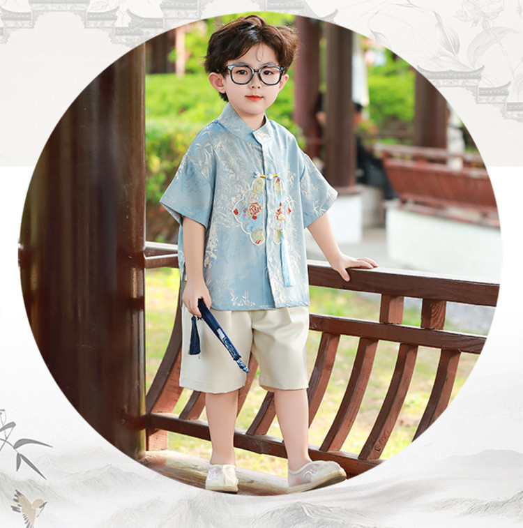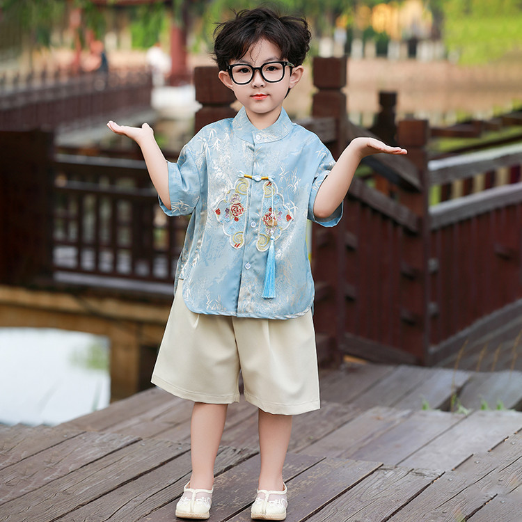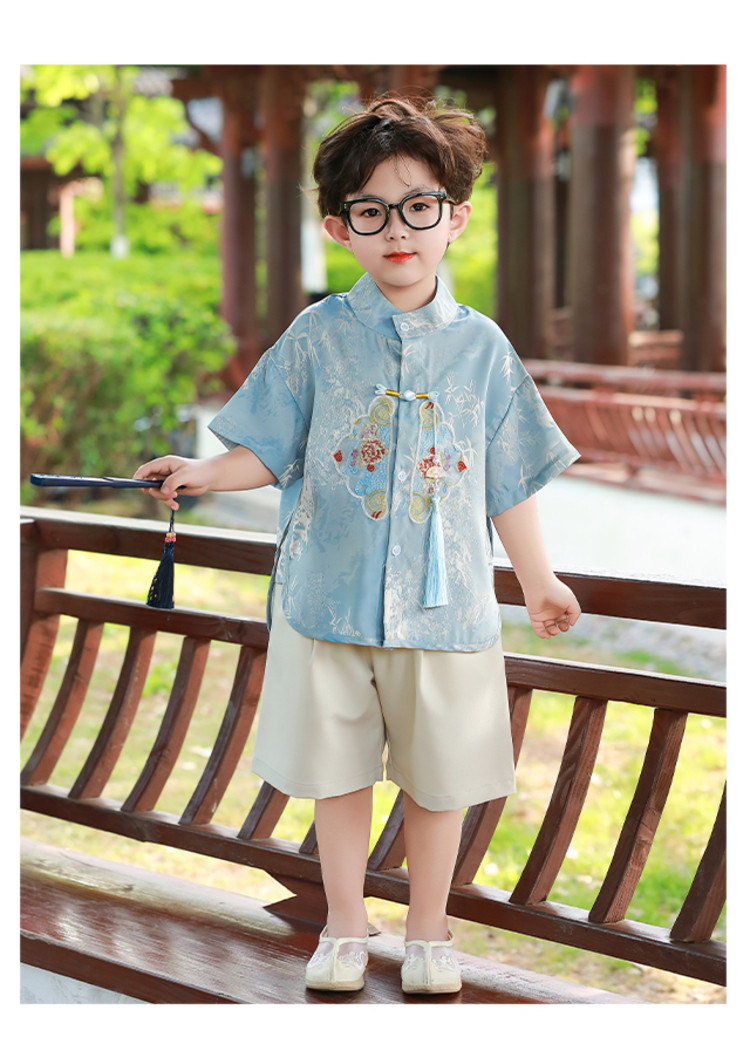 Мальчик Летний комплект с короткими рукавами 2025 новый ребенок красивый китайский стиль новые китайские шорты набор из двух частей