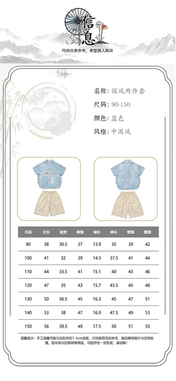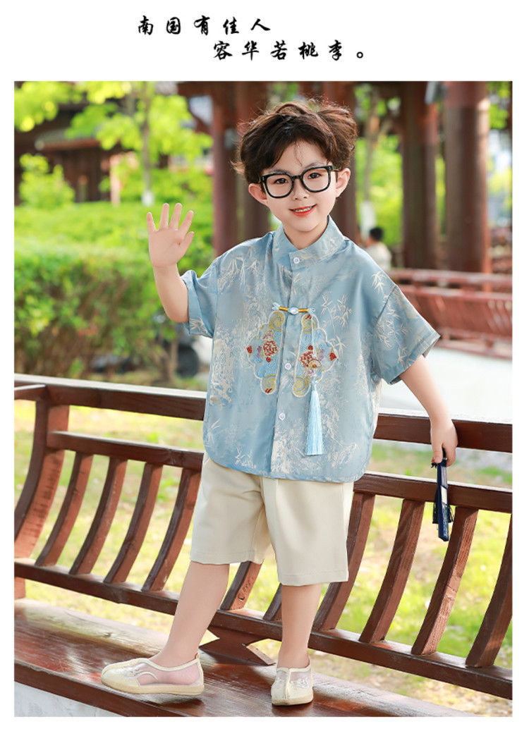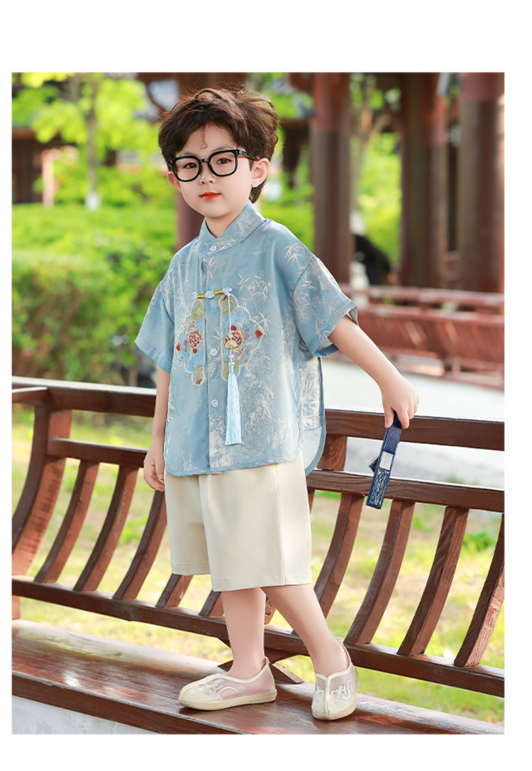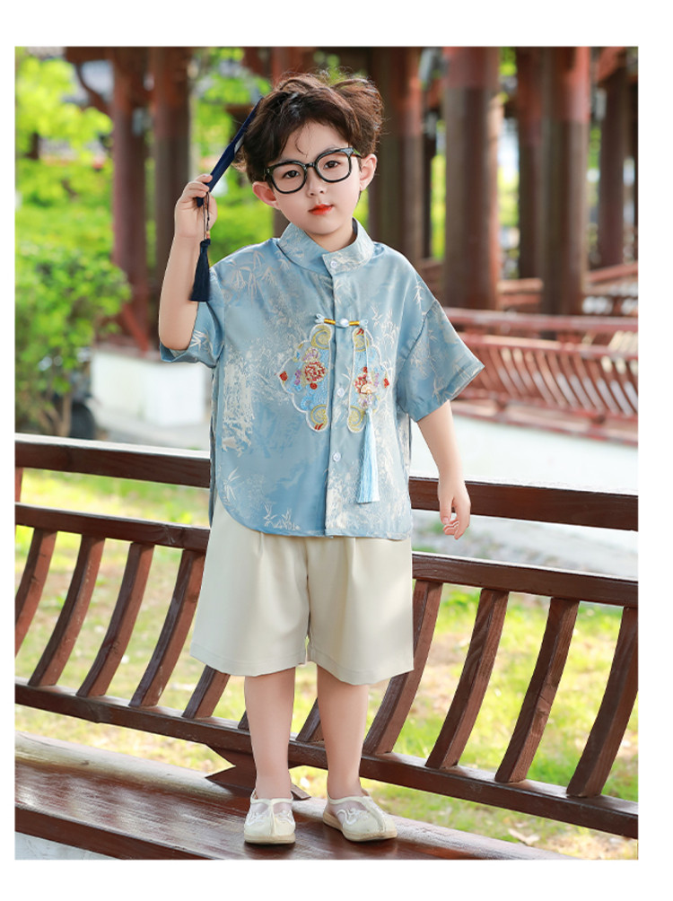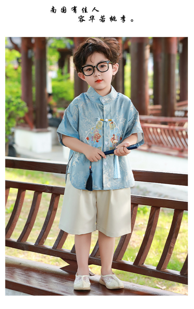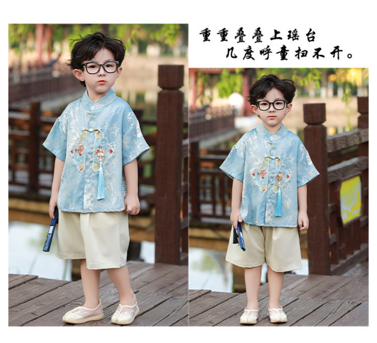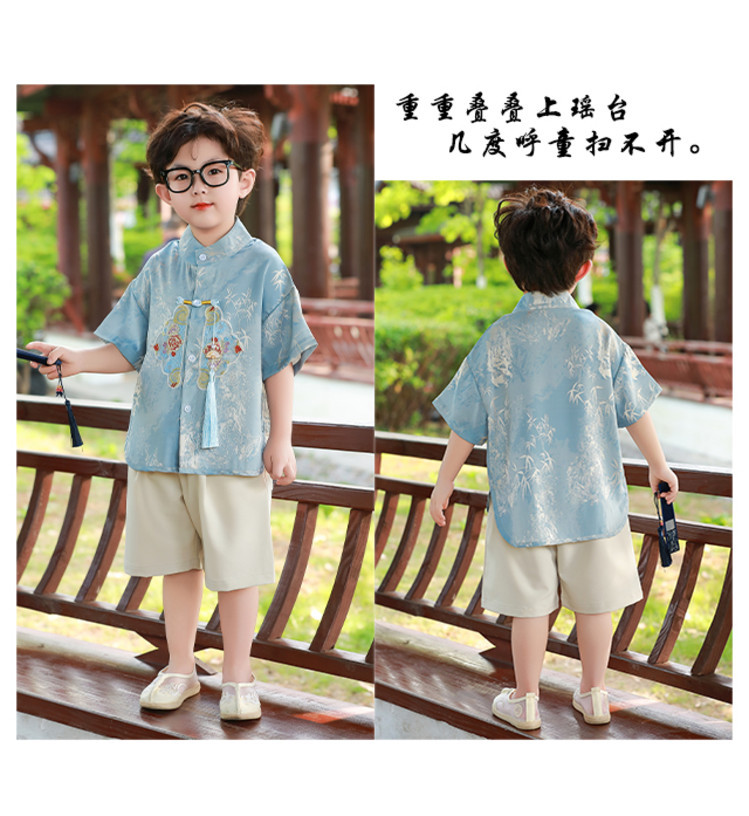 Мальчик Летний комплект с короткими рукавами 2025 новый ребенок красивый китайский стиль новые китайские шорты набор из двух частей