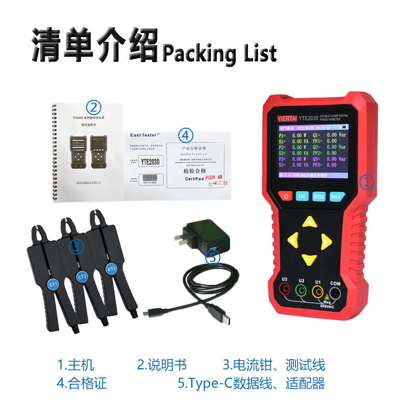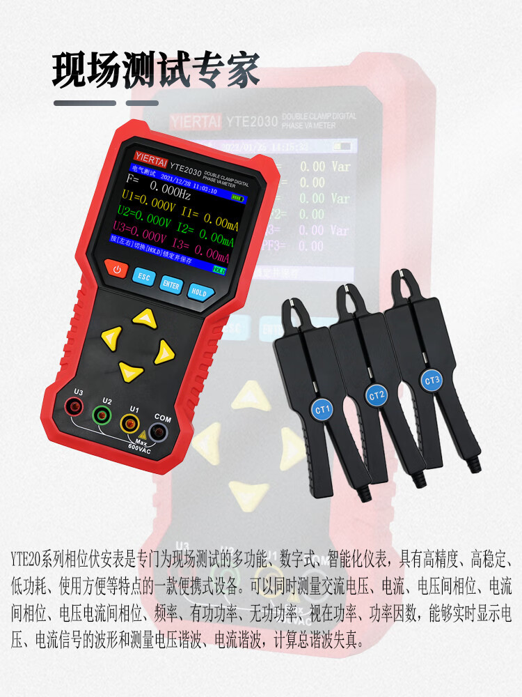 East Tester Zhongchuang YTE2020 Многофункциональный фазовый измеритель-детектор с двойным зажимом, цифровой фазовый вольтметр