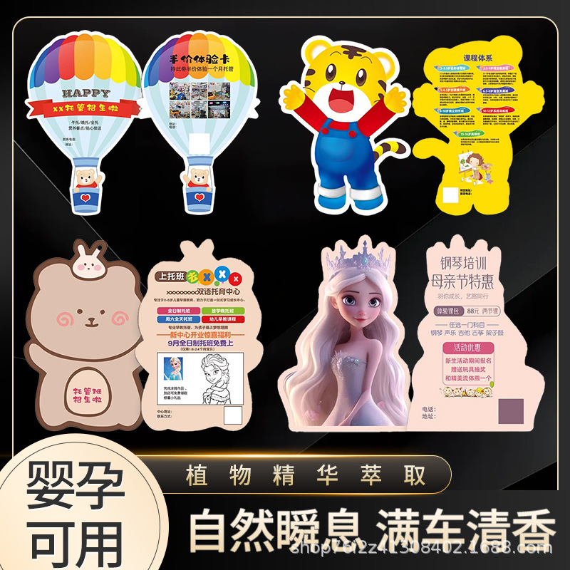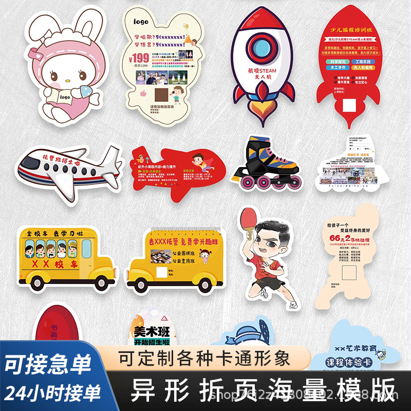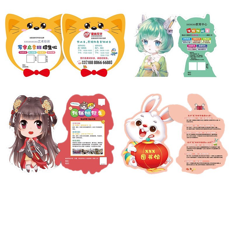Рекламные карты специальной формы для приема на учебу в начале школьного сезона, репетиторских занятий и занятий в детских садах, карты приема на учебу, рекламная печать, индивидуальное оформление учебных планов с героями мультфильмов.