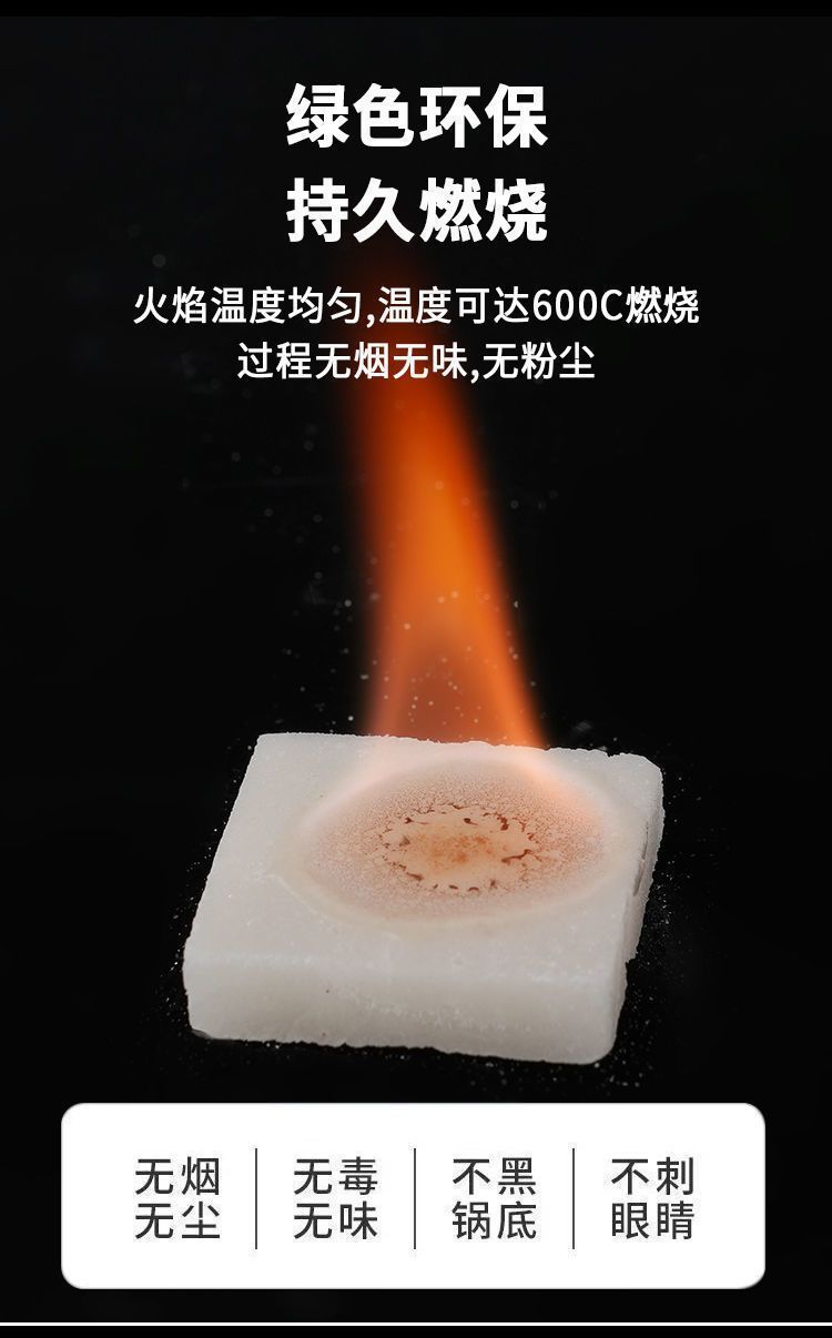 Удобный твердотопливный блок/цельный блок может гореть в течение 15 минут.