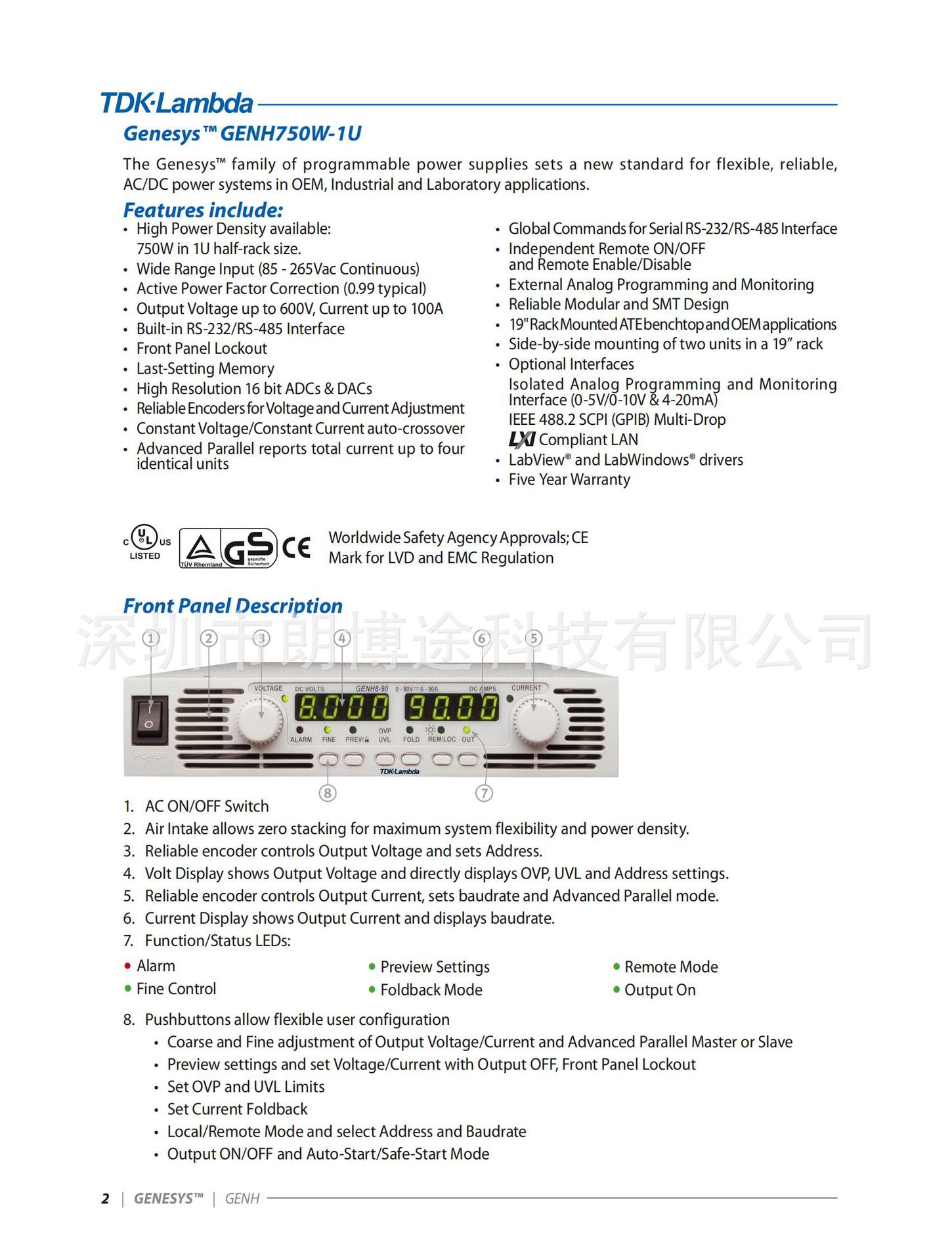 Программируемый источник питания постоянного тока TDK-GENH6-100/GENH30-25/GENH600-1.3, 750 Вт