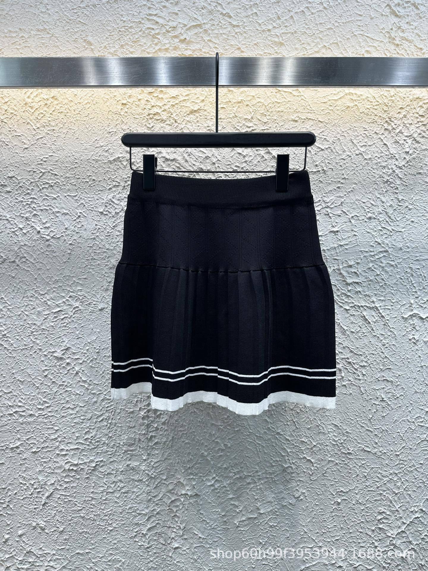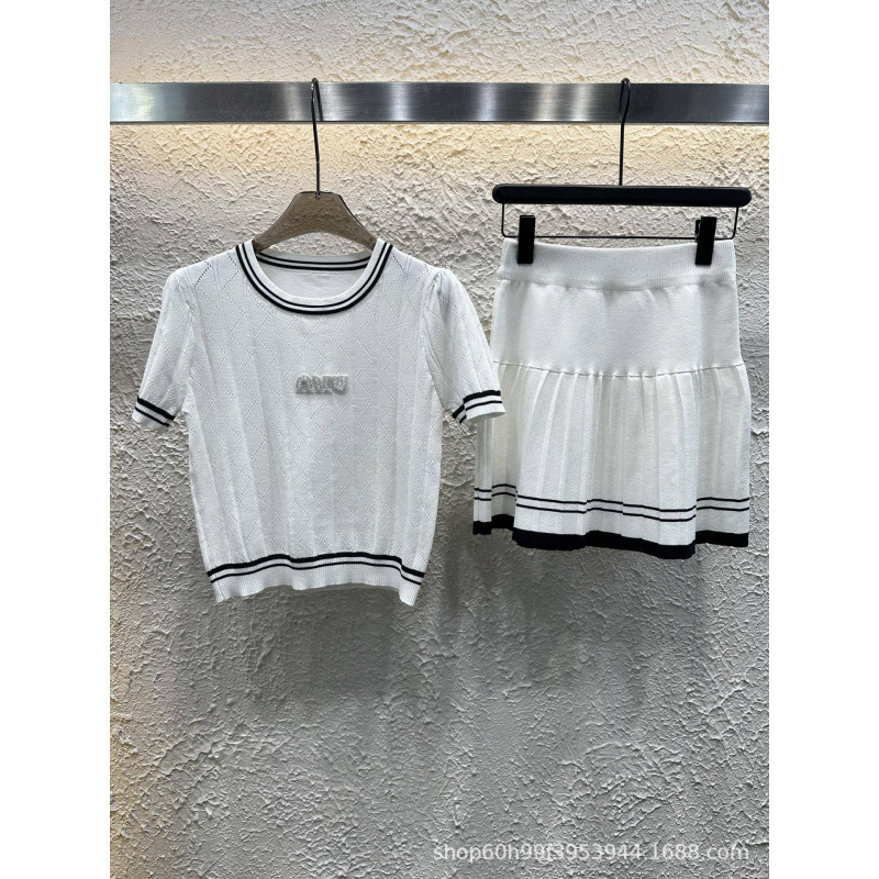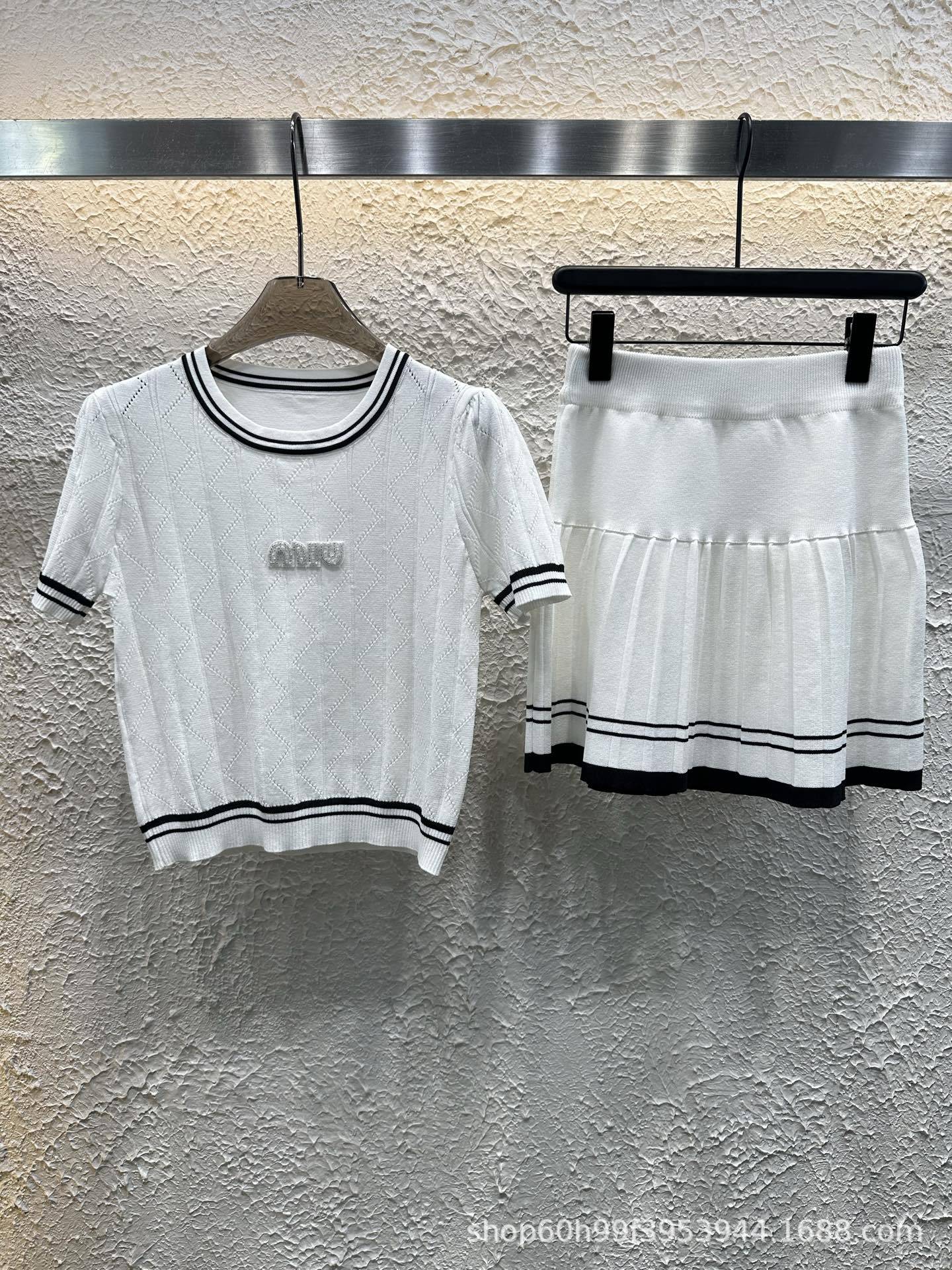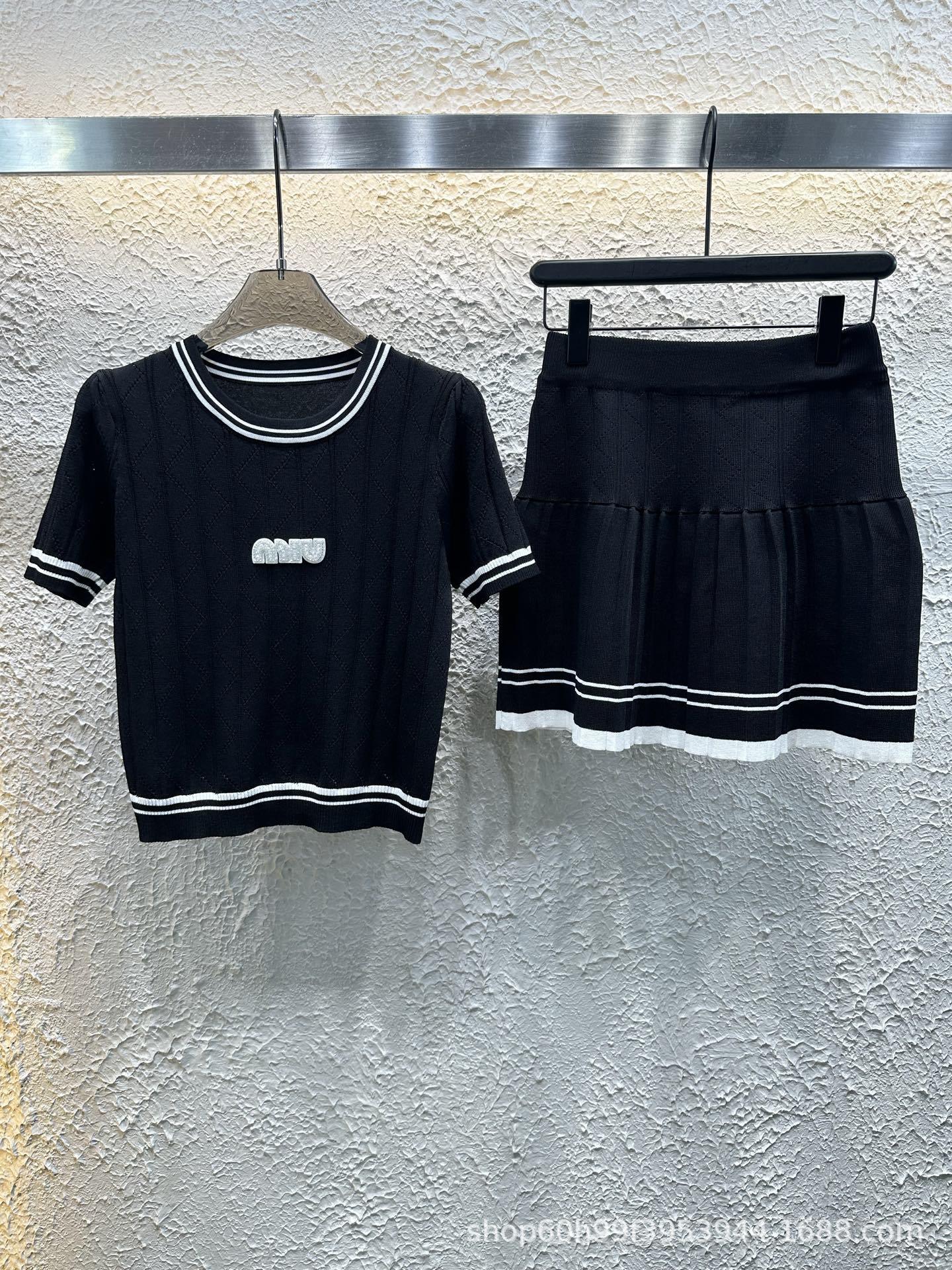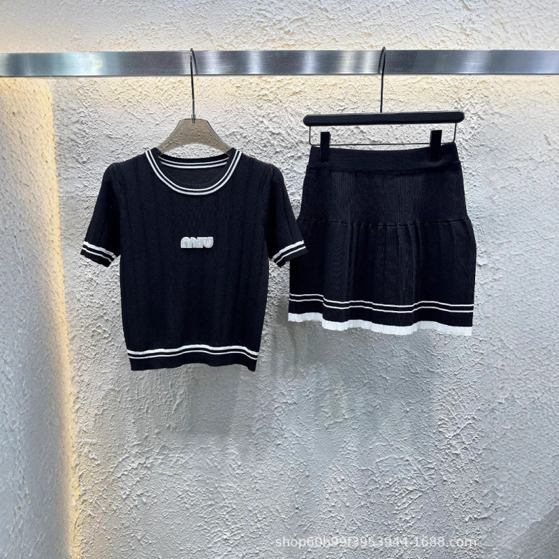 25 новых летних стильных жаккардовых трикотажных костюмов с короткими рукавами и юбкой с темным узором и объемными буквами