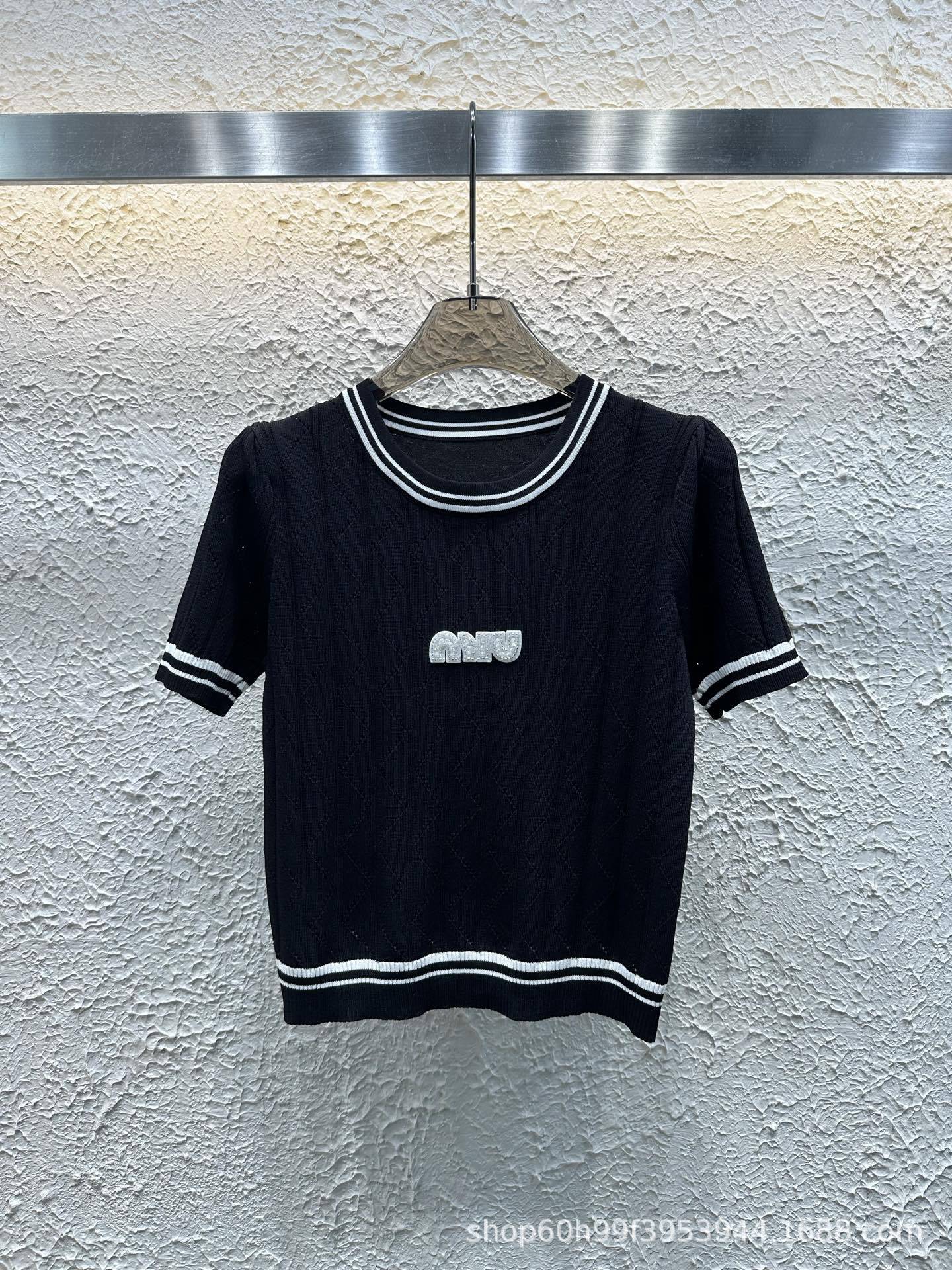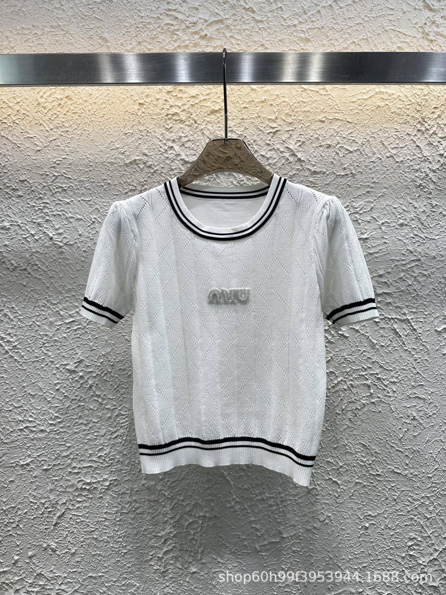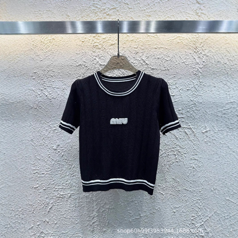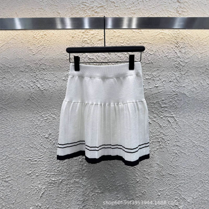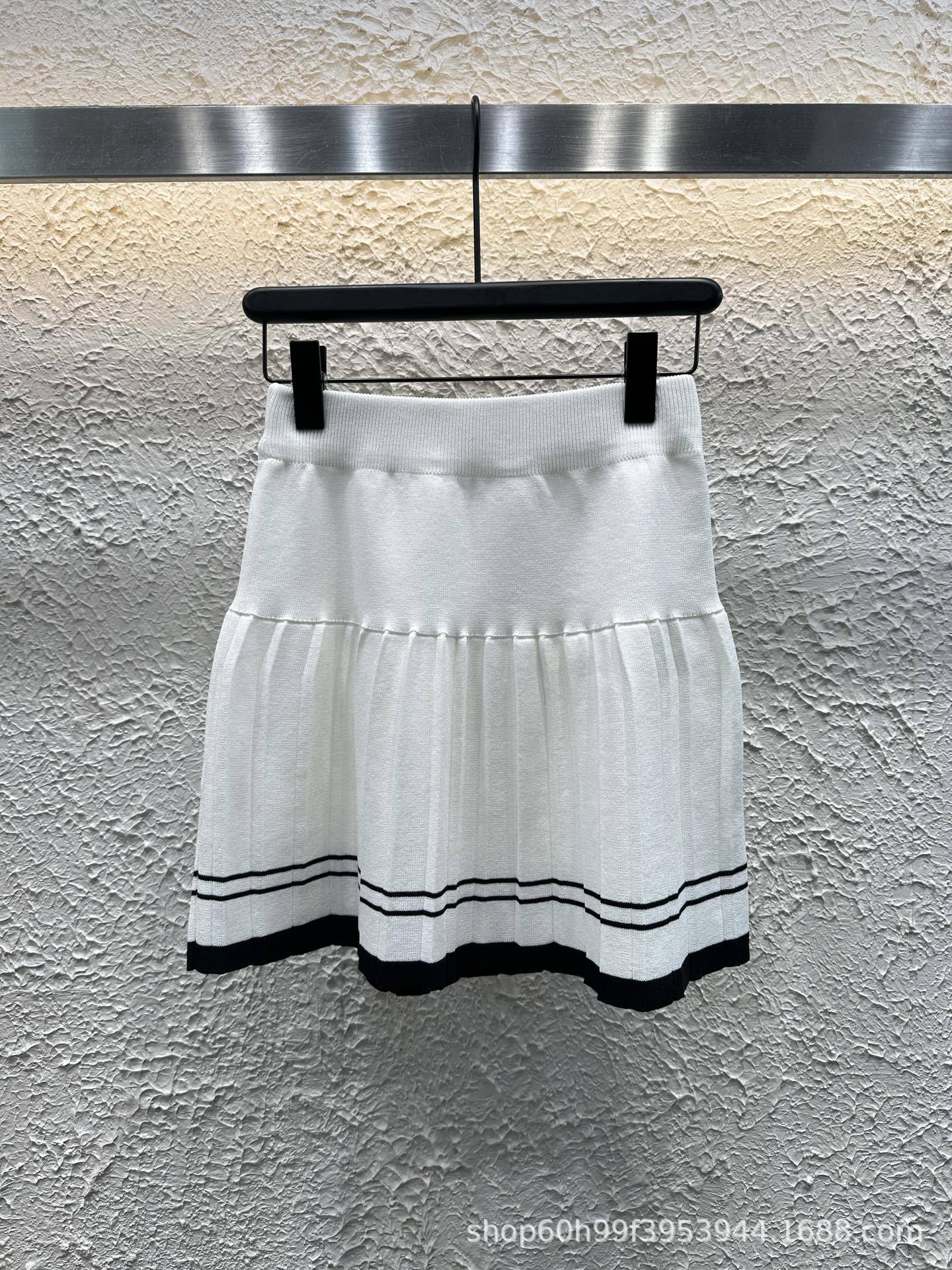 25 новых летних стильных жаккардовых трикотажных костюмов с короткими рукавами и юбкой с темным узором и объемными буквами