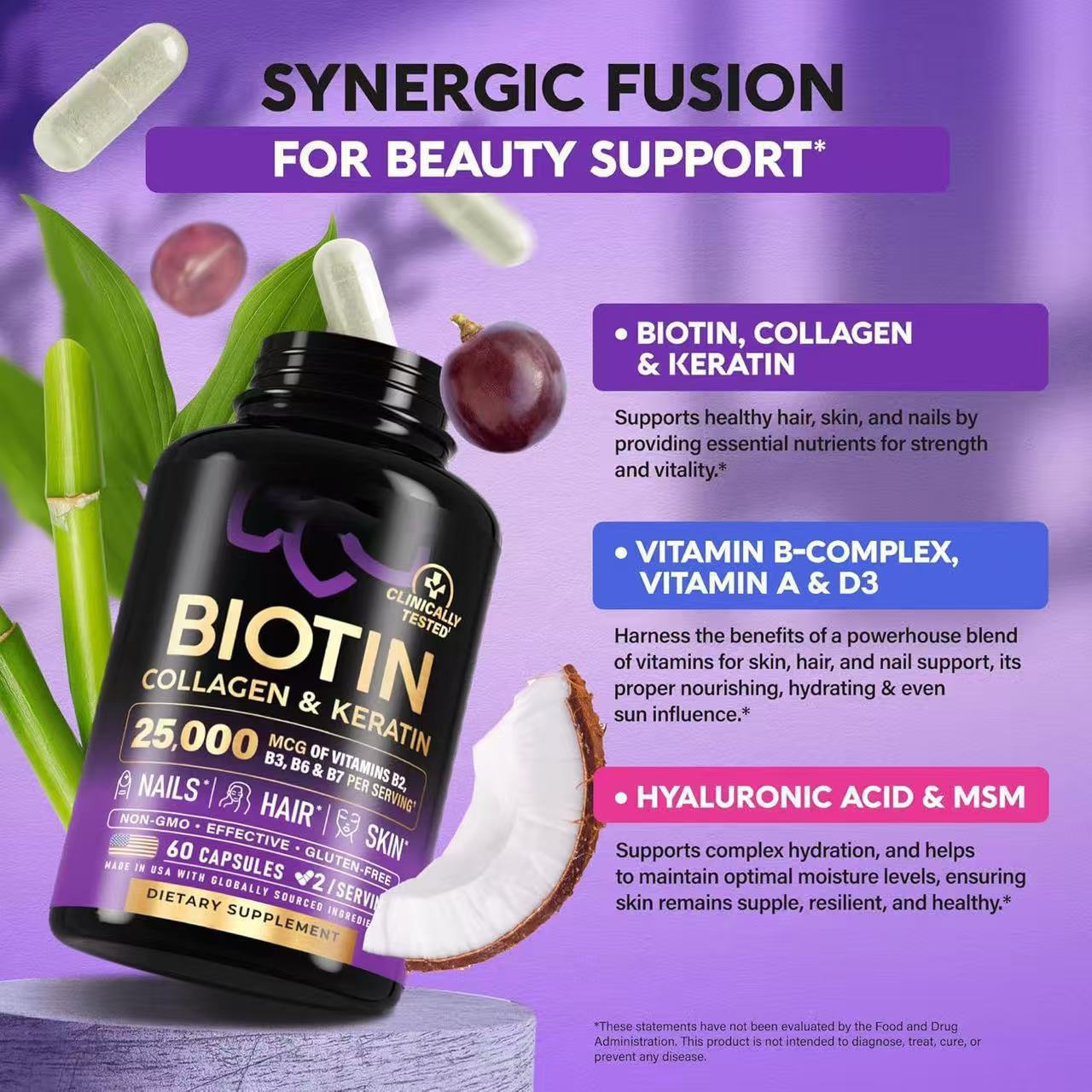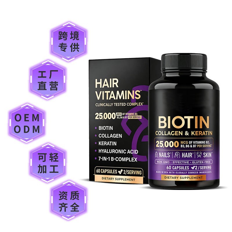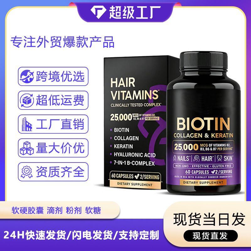 Популярный трансграничный товар: Капсулы биотина TK Amazon, источник биотина, коллагена и кератина, напрямую от производителя.