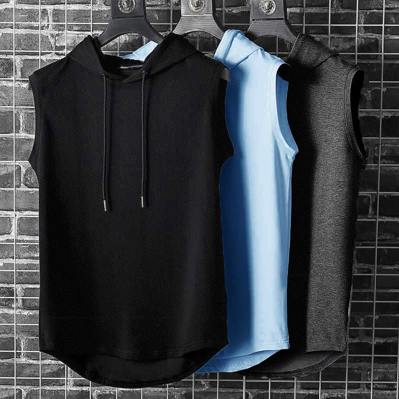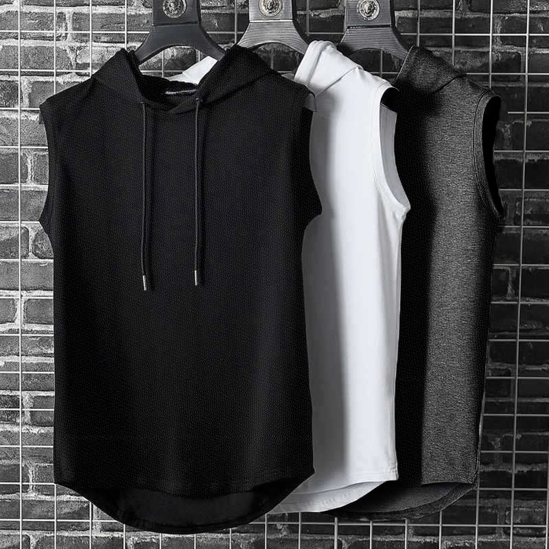 Новый жилет без рукавов, топ, мужская повседневная футболка, однотонная толстовка с капюшоном, футболка на шнуровке, мужские толстовки в стиле хип-хоп