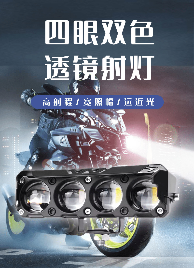 Трансграничный мотоциклетный светодиодный прожектор с четырьмя глазами, двухцветный, дальнего и ближнего света, водонепроницаемый электромобиль, супер яркая модифицированная фара, новая модель