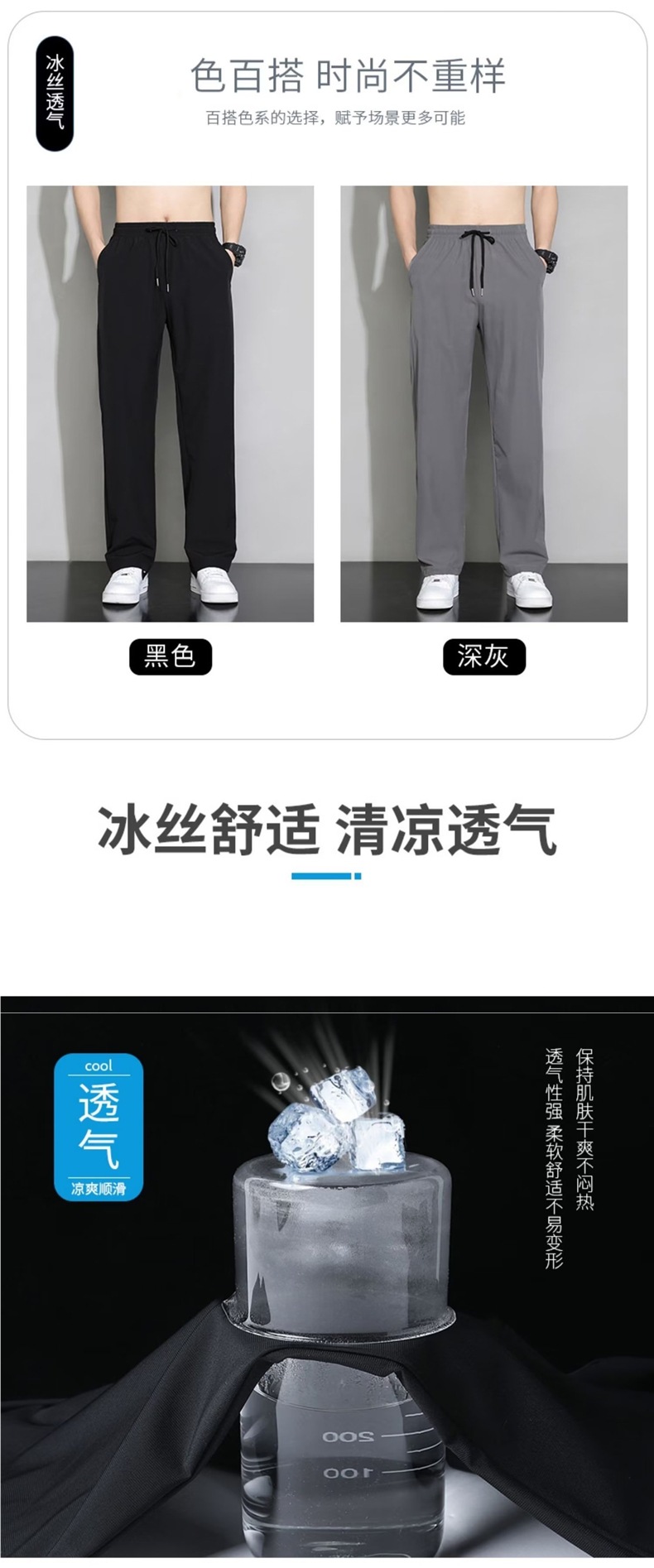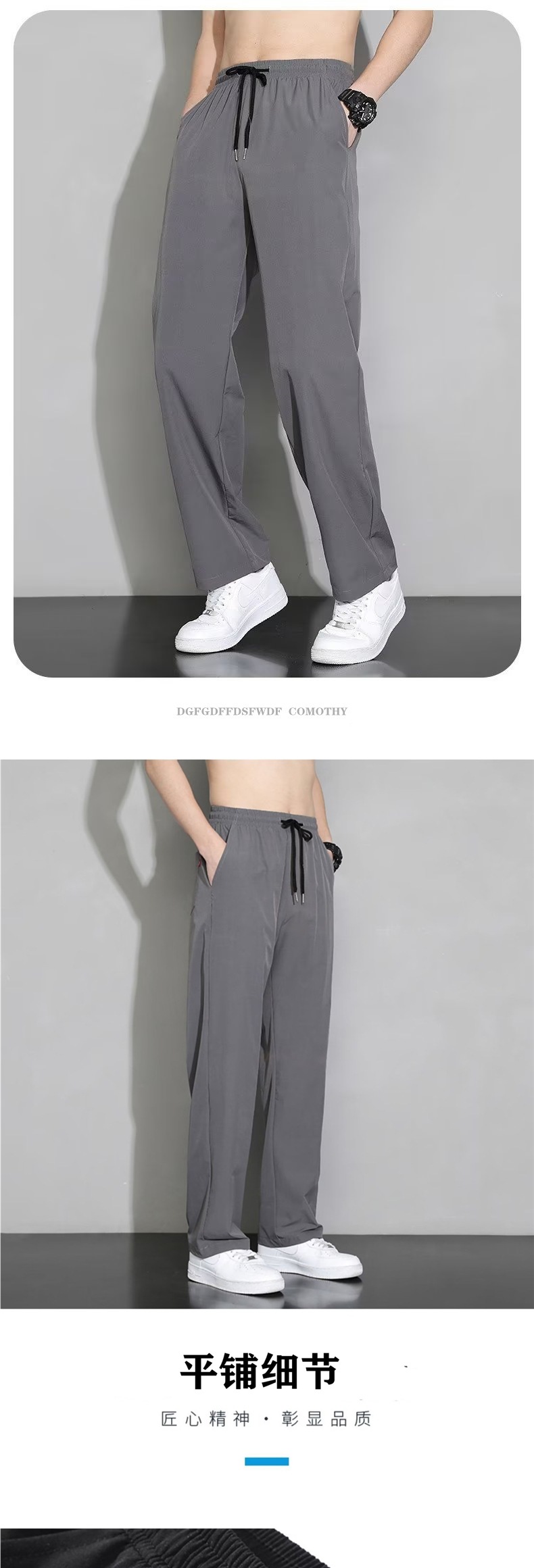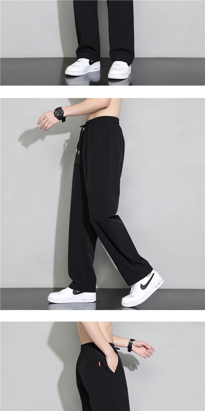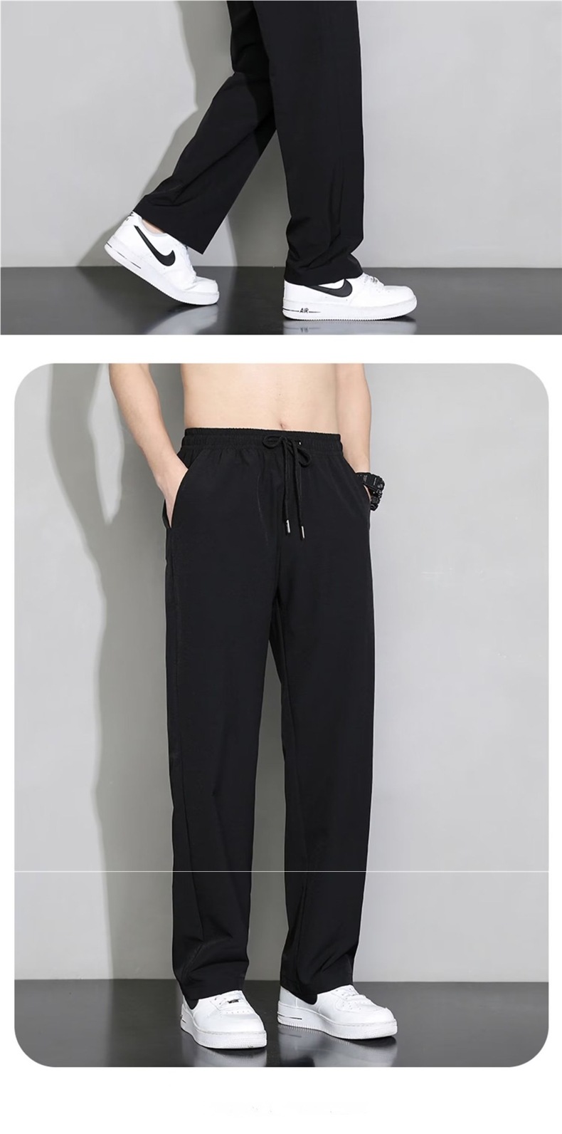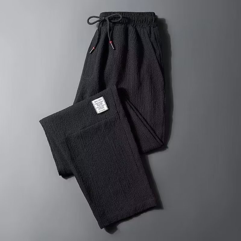 Летние брюки Мужские тонкие ледяной шелк Мужские повседневные брюки тонкие корейские чистые черные свободные прямые спортивные брюки