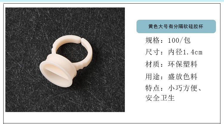 Желтая чашка с мягким силиконовым кольцом - маленького размера без разделения (1 упаковка по 100 штук); Кольцевая чашка из мягкого силикона желтого цвета, среднего размера, без разделения (1 упаковка по 100 шт.); Желтая чашка с мягким силиконовым кольцом - большой размер с разделителем (1 упаковка по 100 штук)