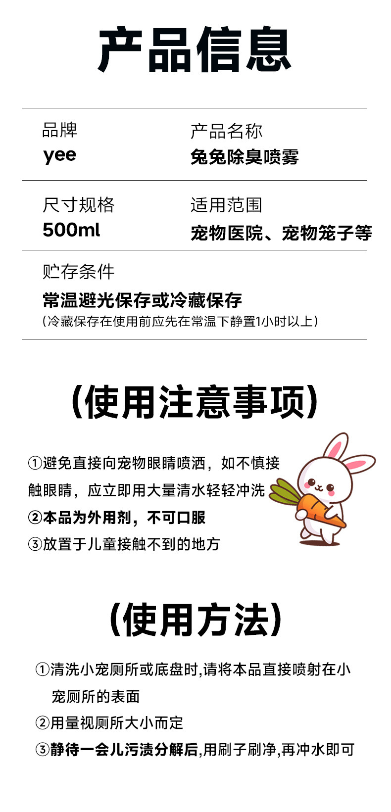 Yee Rabbit Cleaner Спрей для чистки пятен мочи кролика Дезодорирующий очиститель для морской свинки, голландской свиньи, шиншиллы, хомяка
