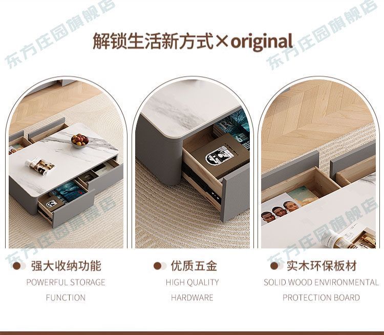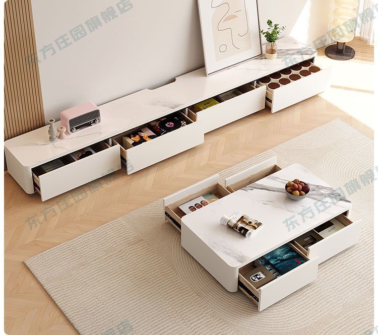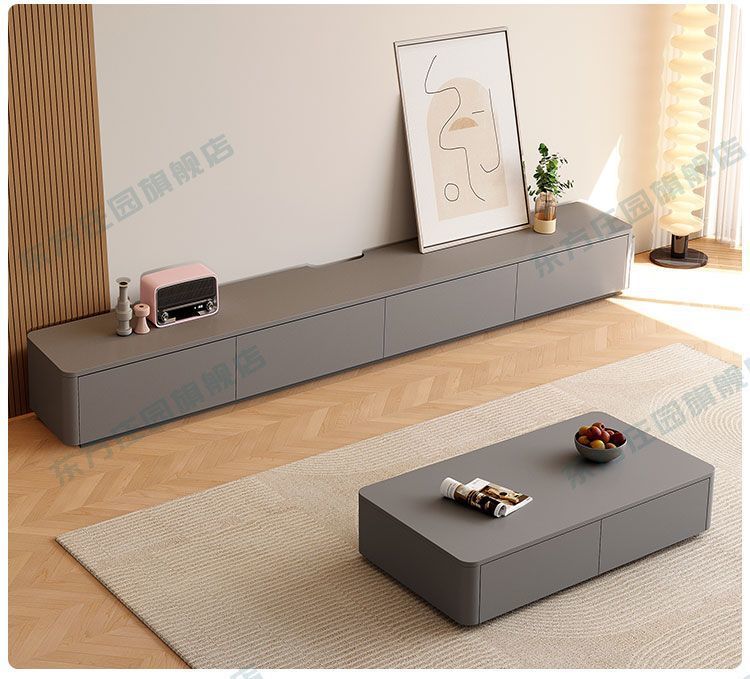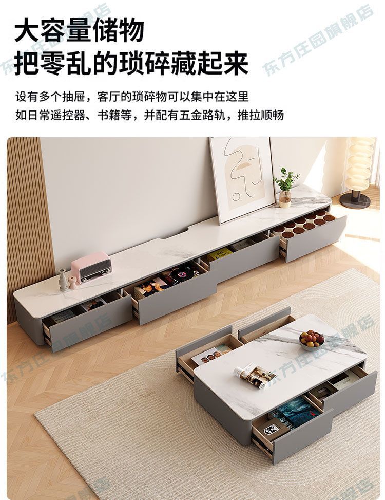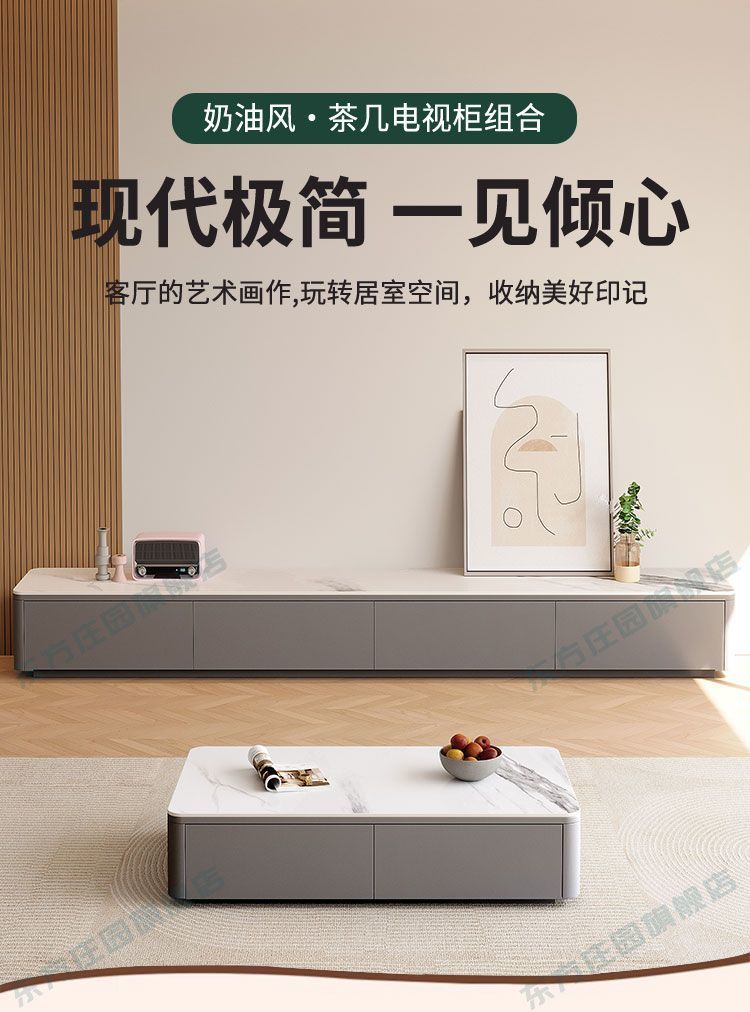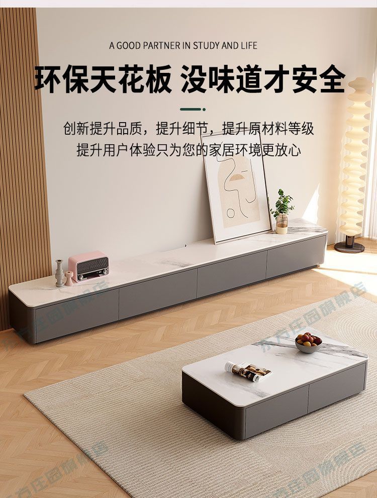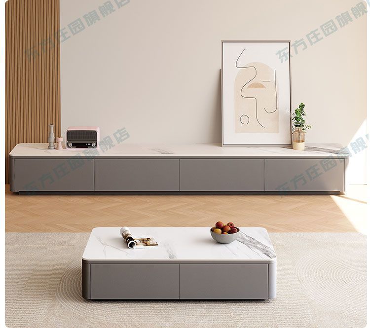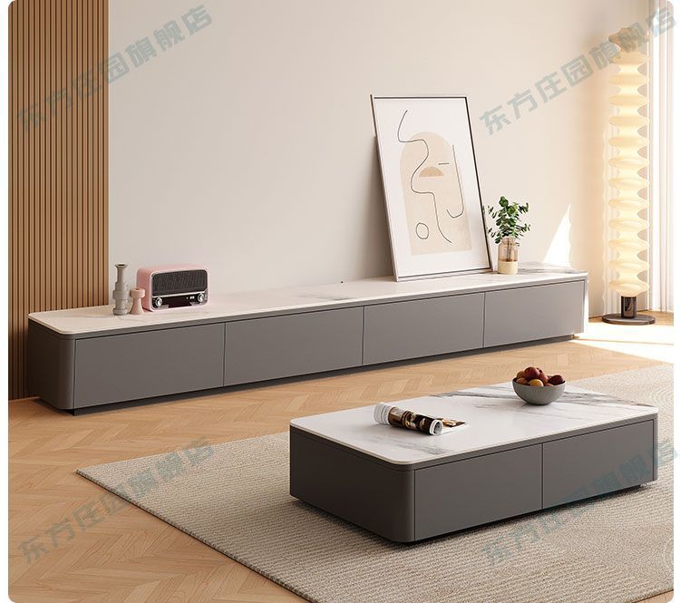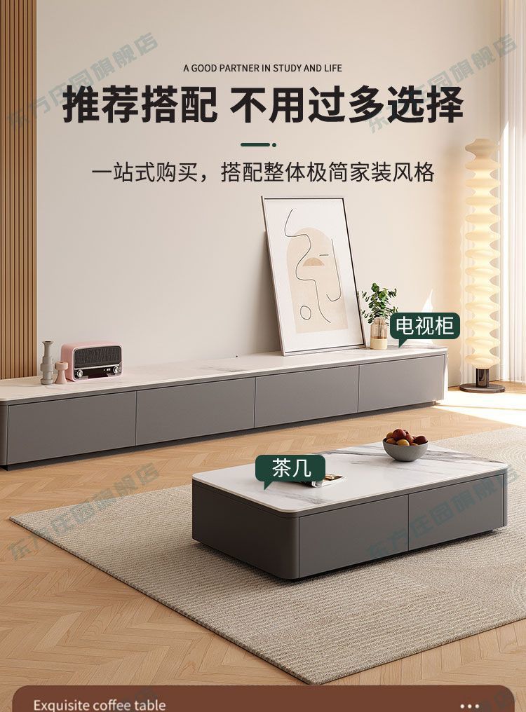Комбинация журнального столика из цельного дерева от пола до потолка Комбинация журнального столика Современная минималистская новая гостиная