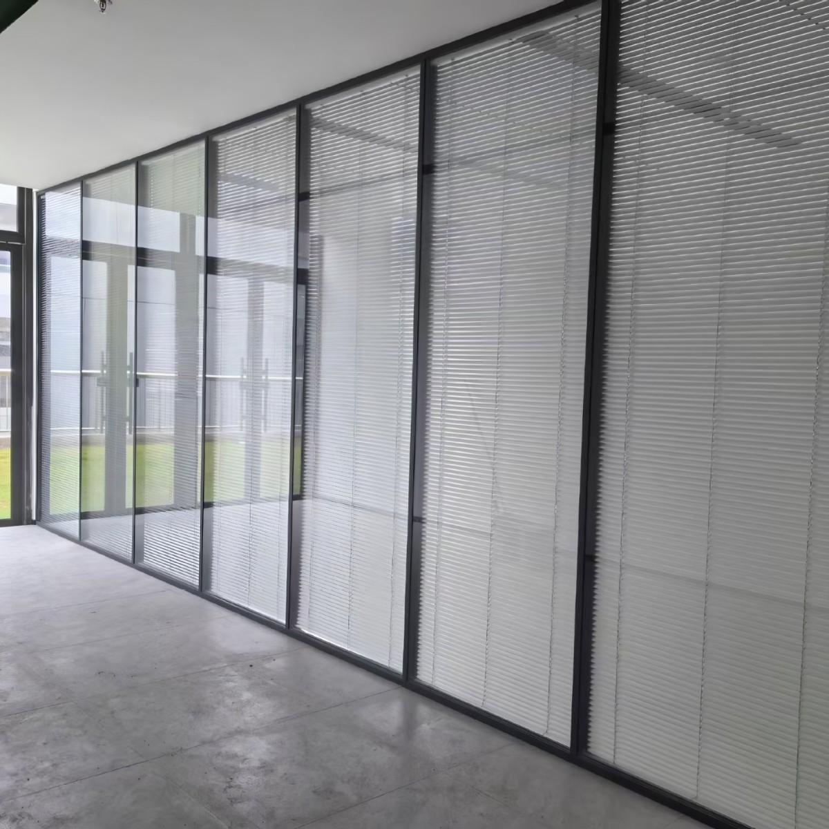 Офисная стеклянная перегородка из матового алюминиевого сплава с двойным слоем, внутренняя сталь с жалюзи и внешняя алюминиевая огнестойкая стеклянная перегородка