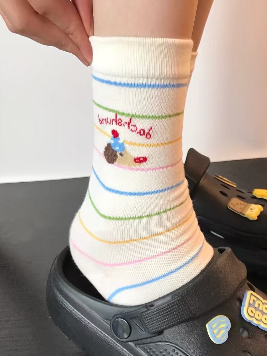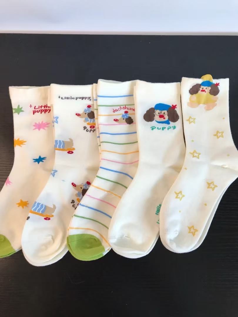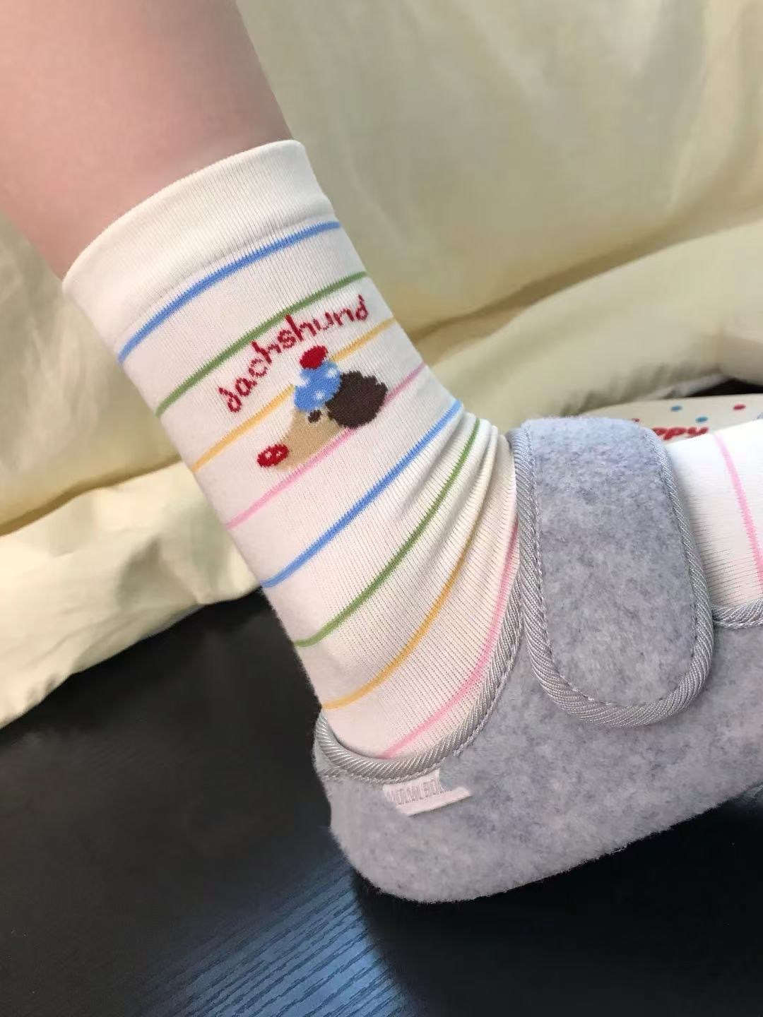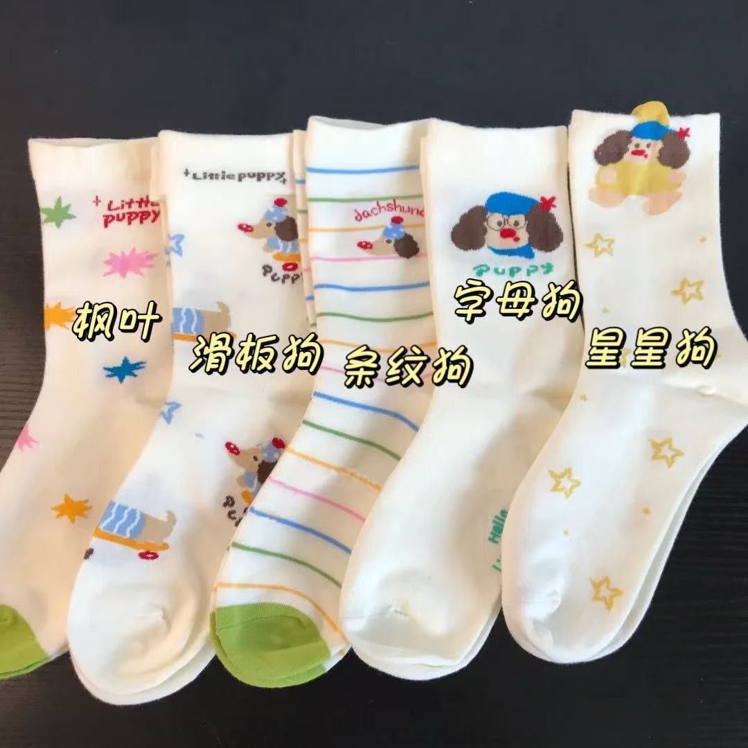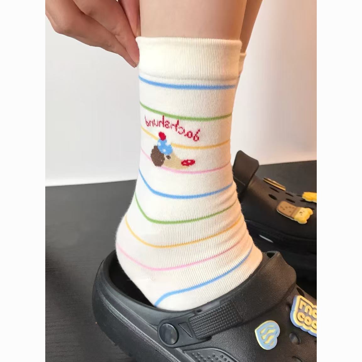 Новый стиль Meillard Щенячий колледж ветровой весны летние носки женский летний колледж стиль иллюстрации мультфильм полосатый чулок женский