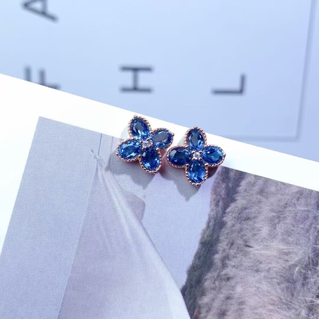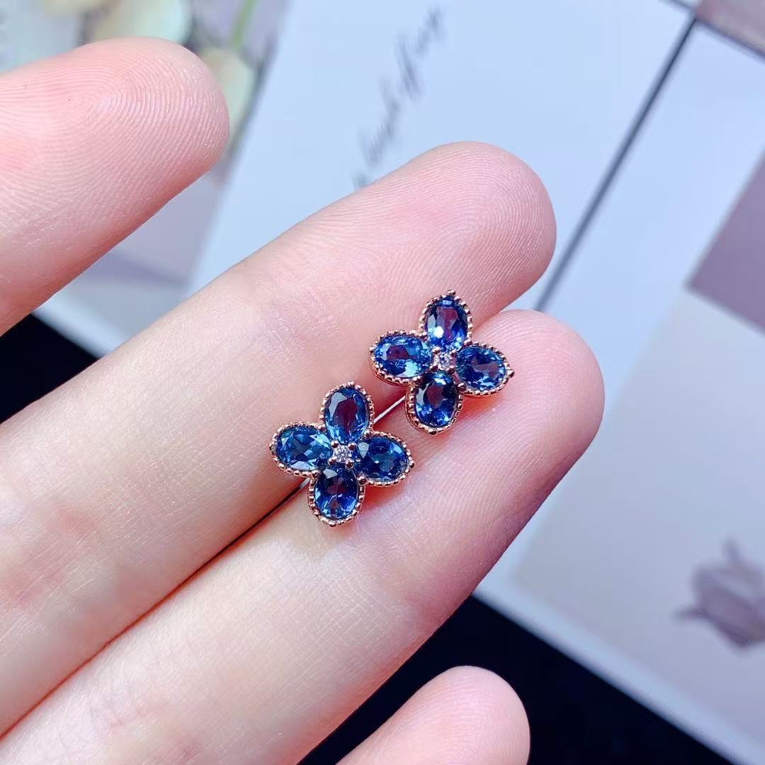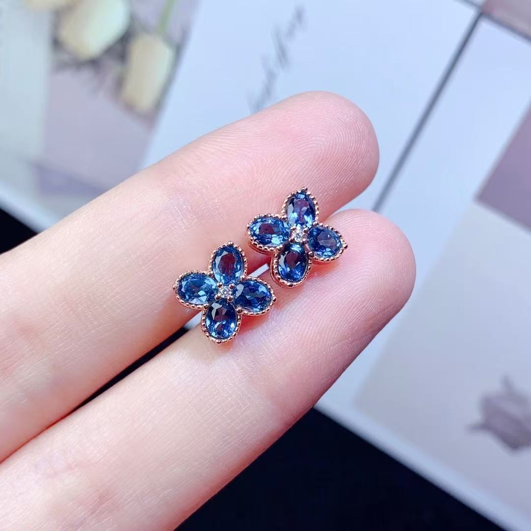 Серьги с лондонским голубым топазом, серебро 925 пробы, инкрустированные четырехлистным клевером, простые модные изысканные универсальные серьги с цветными драгоценными камнями