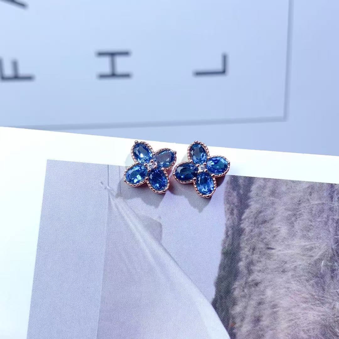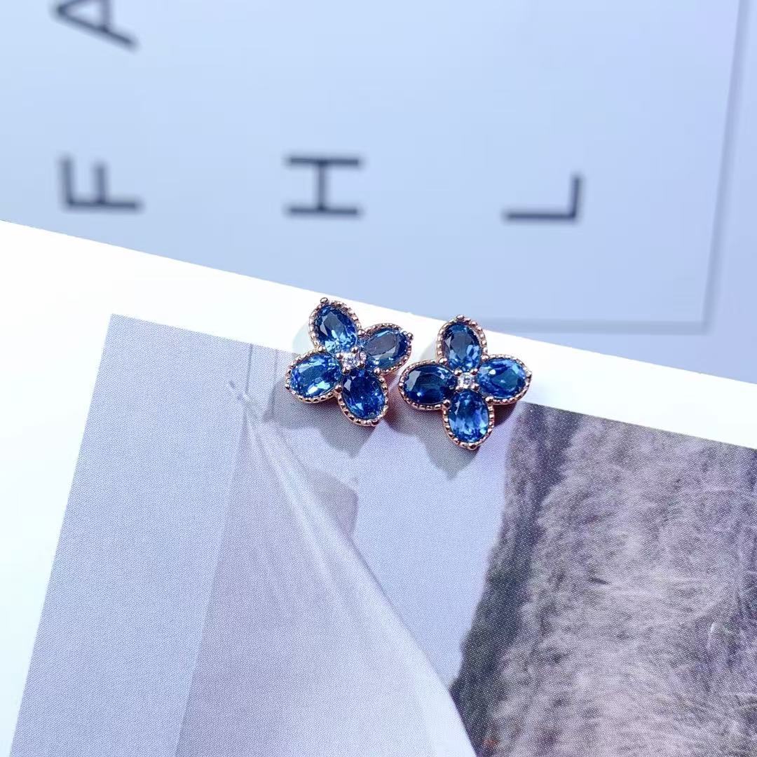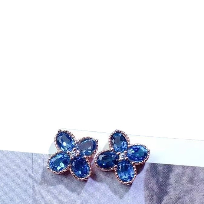 Серьги с лондонским голубым топазом, серебро 925 пробы, инкрустированные четырехлистным клевером, простые модные изысканные универсальные серьги с цветными драгоценными камнями