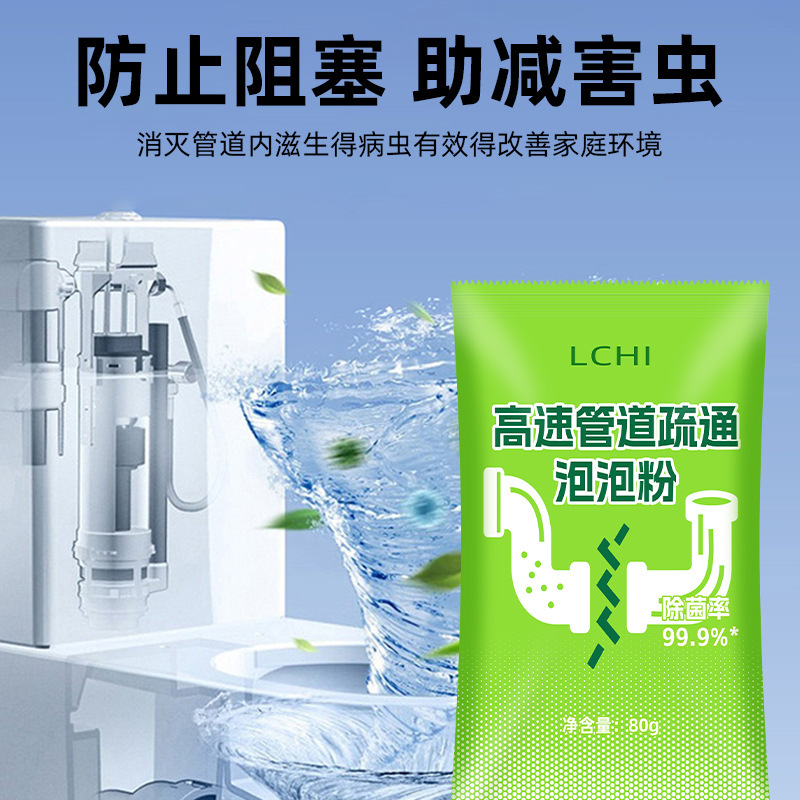 Высокоэффективный порошок для очистки труб, мощное средство для удаления засоров в кухонных стоках, напольных сливах и устранения запахов в туалете.