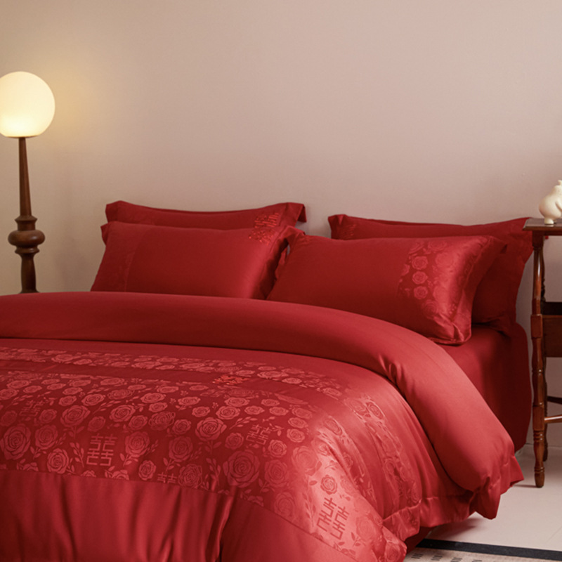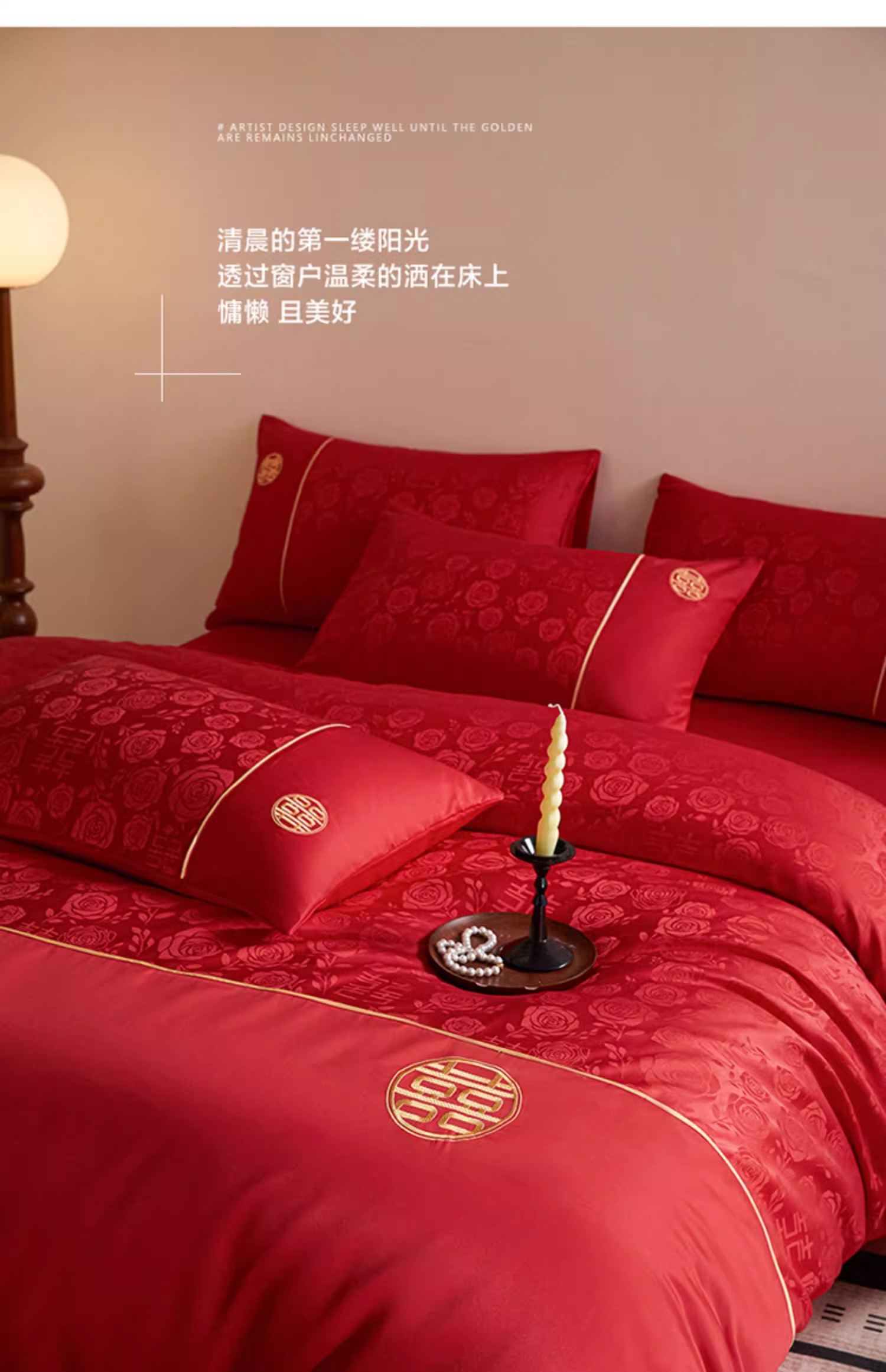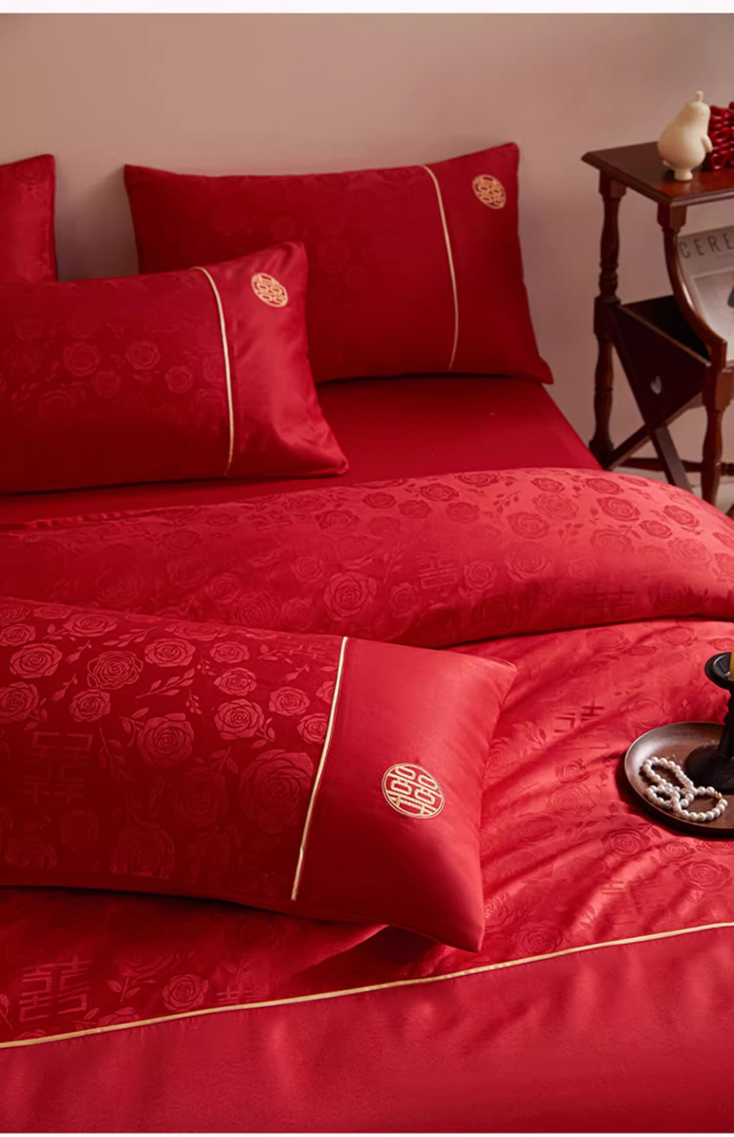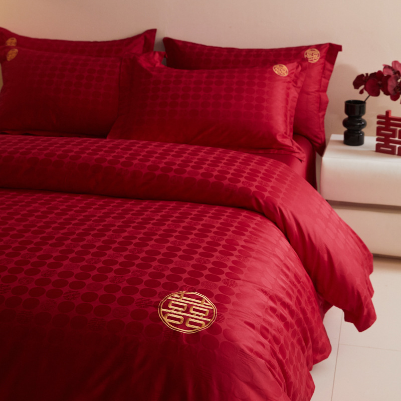 Высококачественный жаккардовый свадебный комплект из четырех предметов, свадебная большая красная свадебная кровать, постельное белье, пододеяльник, принадлежности для молодоженов, свадебное одеяло, простыни